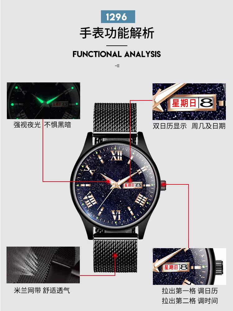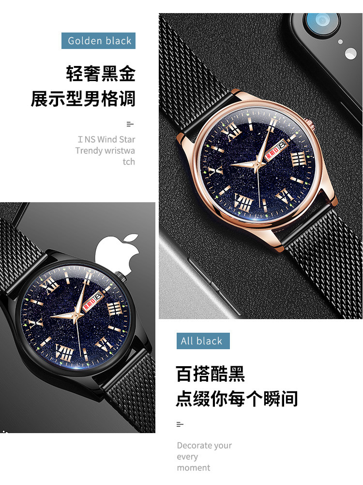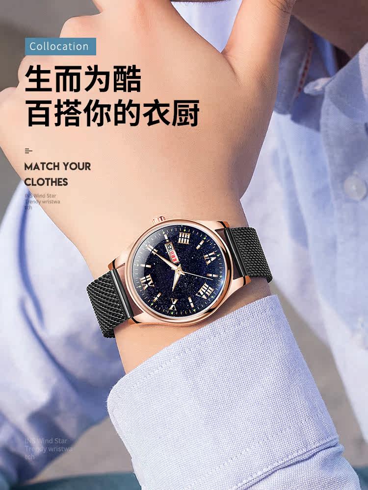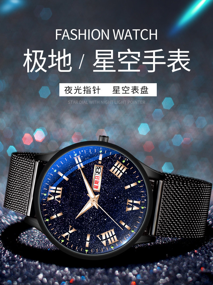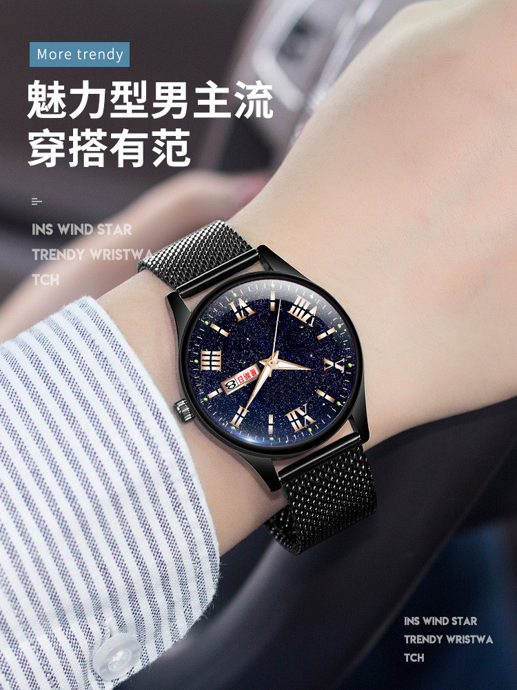 Мужские часы, звездное небо, механический календарь, водонепроницаемые кварцевые часы для школьников, мужской спортивный ремень