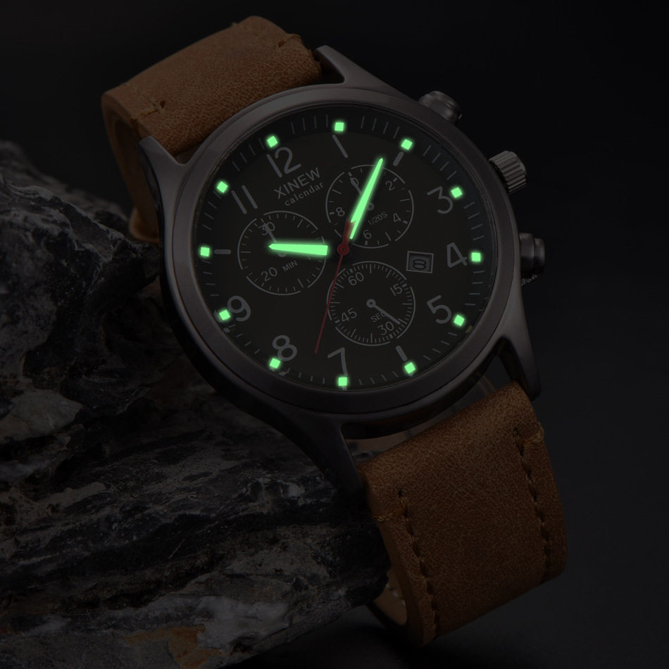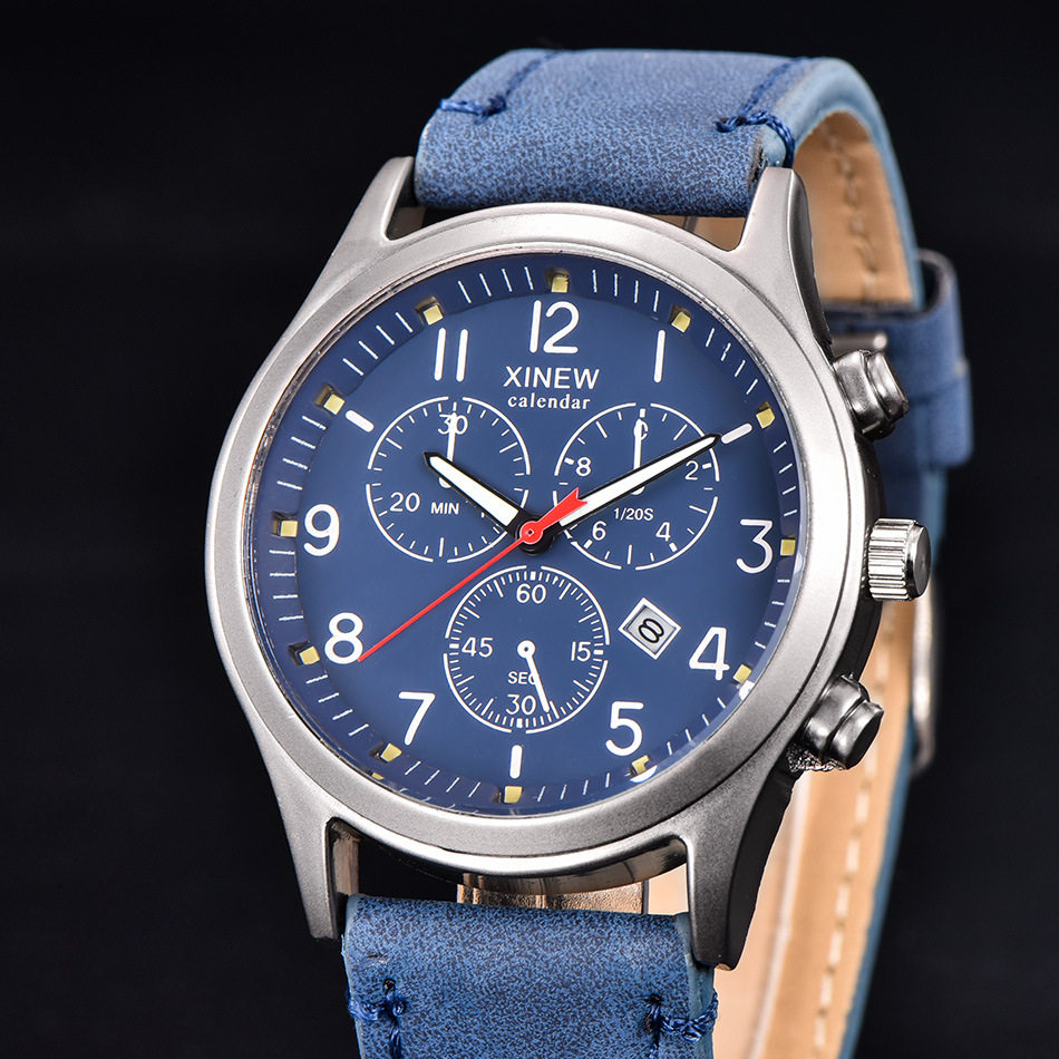 Мужские женщины смотрят модную кожаную группу Date Quartz Watch