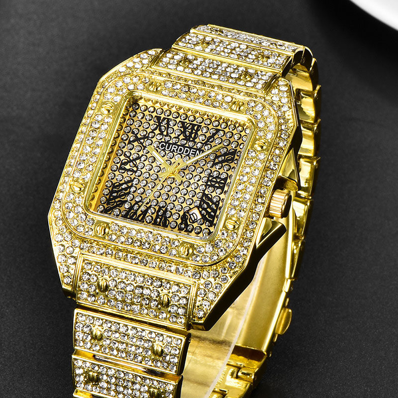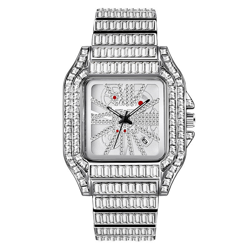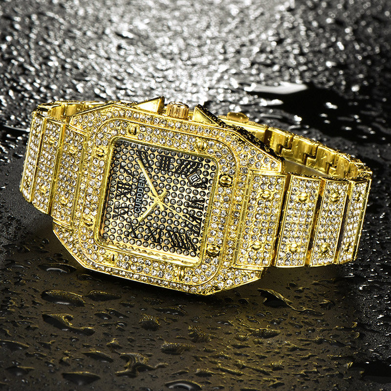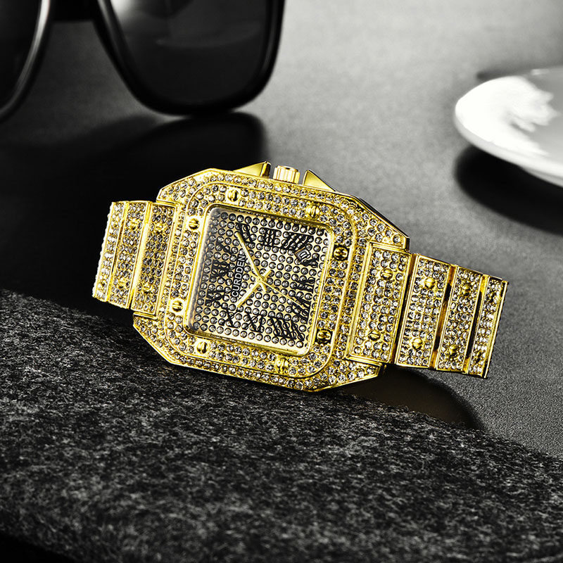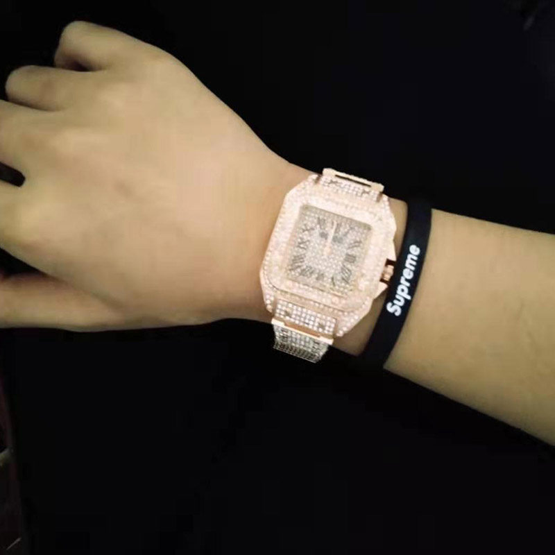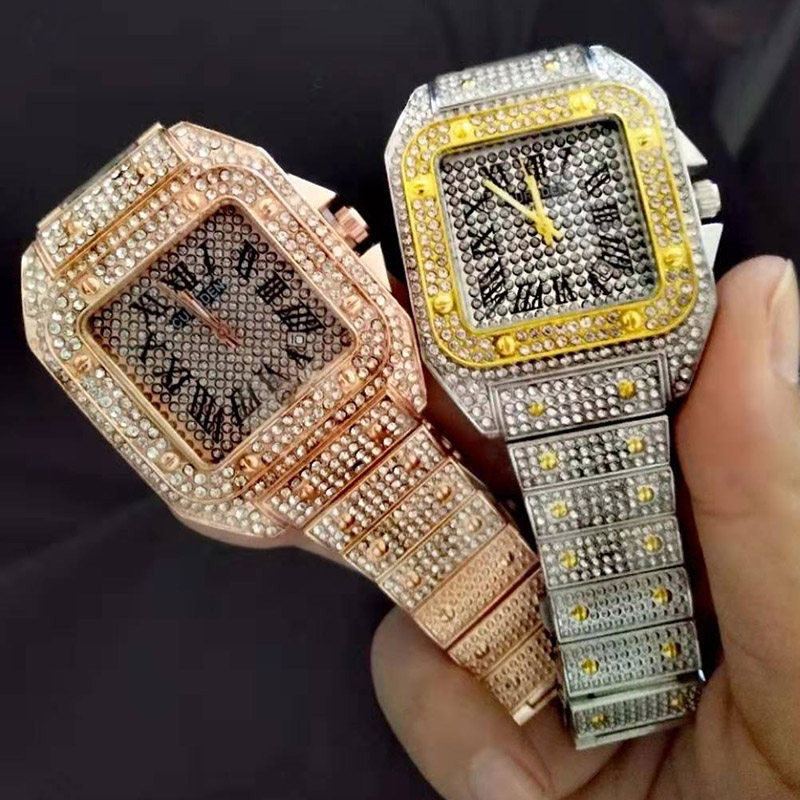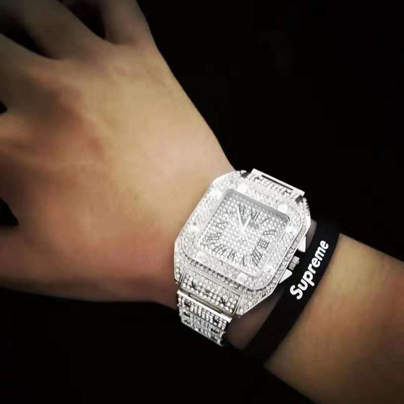 TikTok, квадратные мужские часы, циферблат в стиле хип-хоп, мужские кварцевые часы, инкрустировано бриллиантами, популярно в интернете