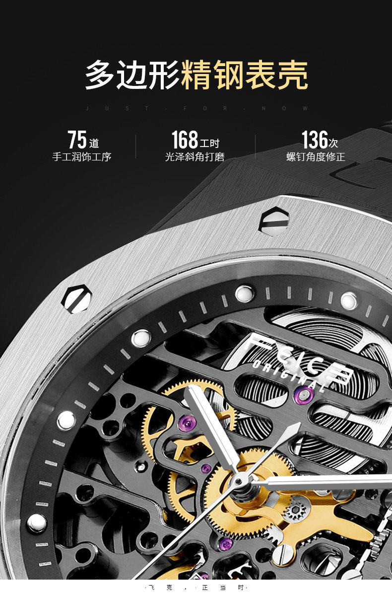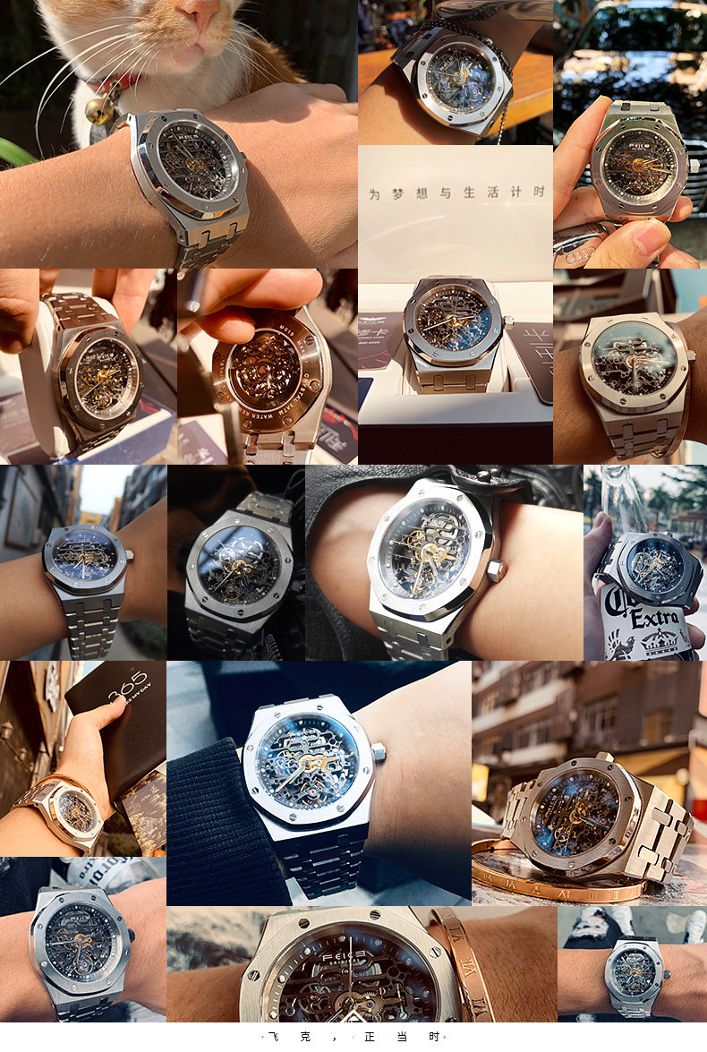 飞克 Двусторонние швейцарские часы, механические водонепроницаемые мужские часы, полностью автоматический