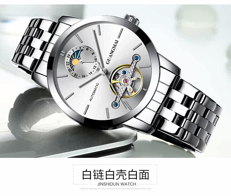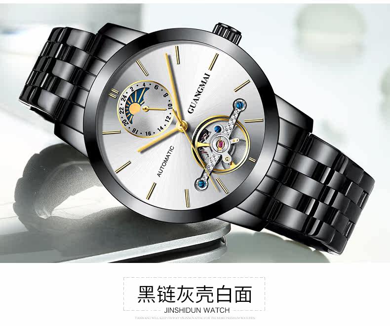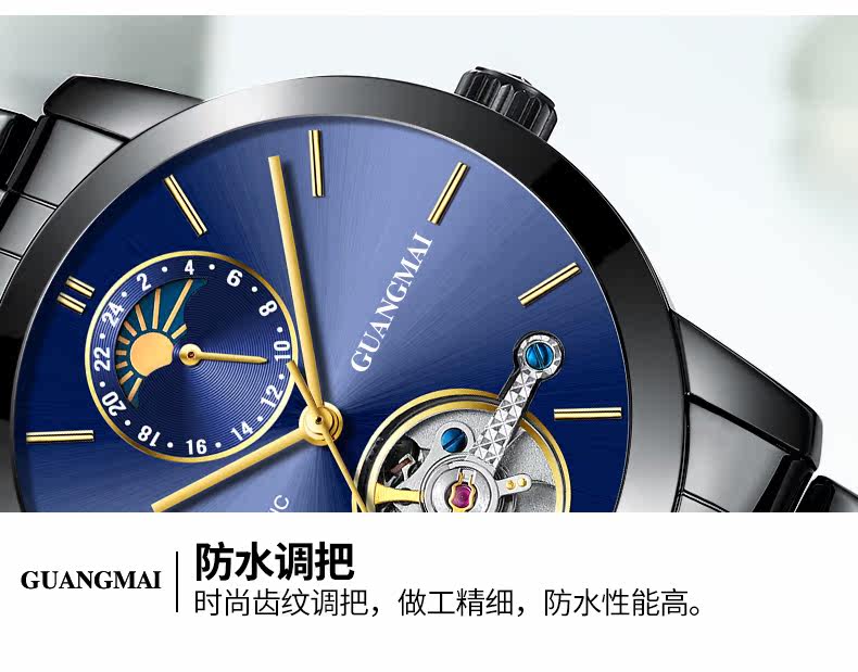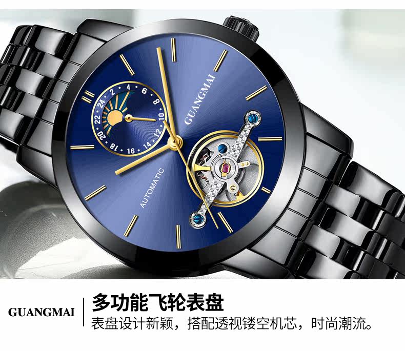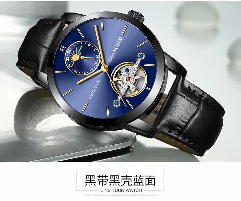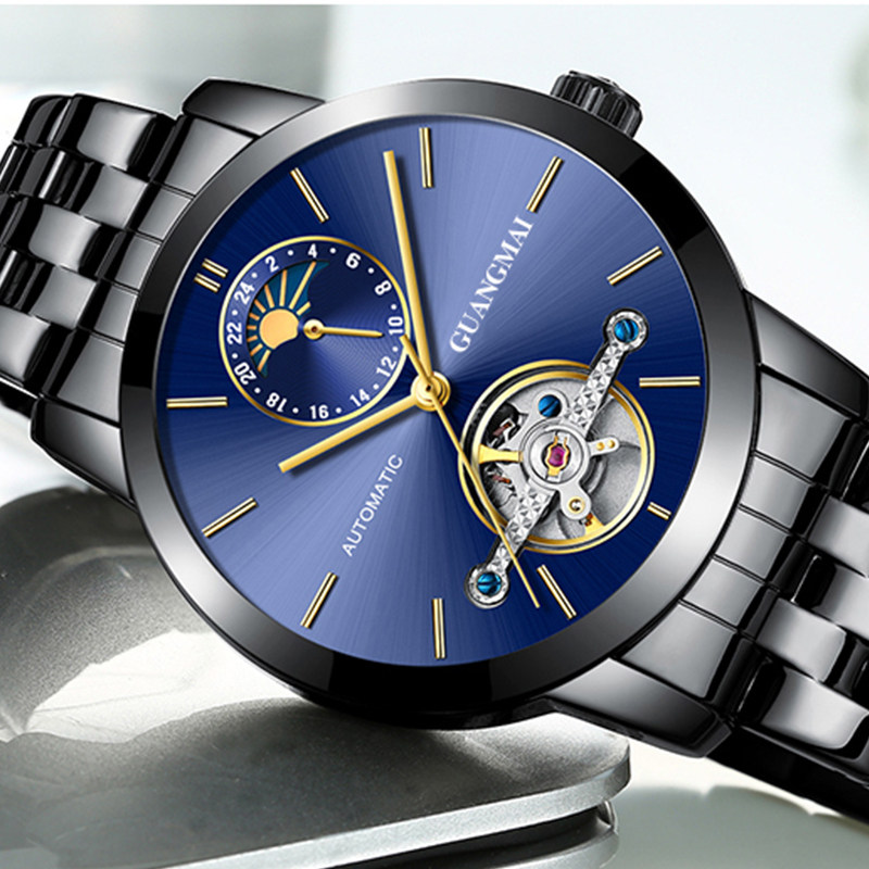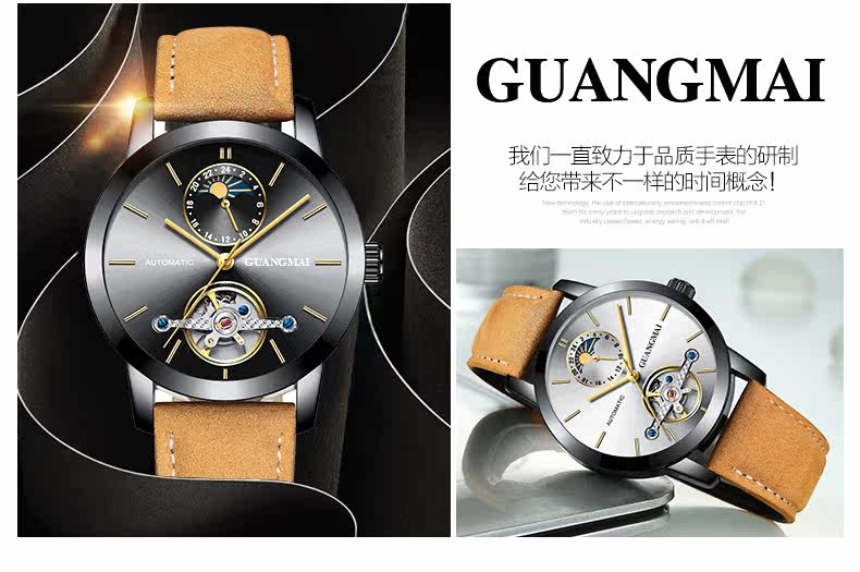 光迈 Механические мужские модные трендовые механические часы, велосипедная кассета, ремень, мужские часы, полностью автоматический, из натуральной кожи