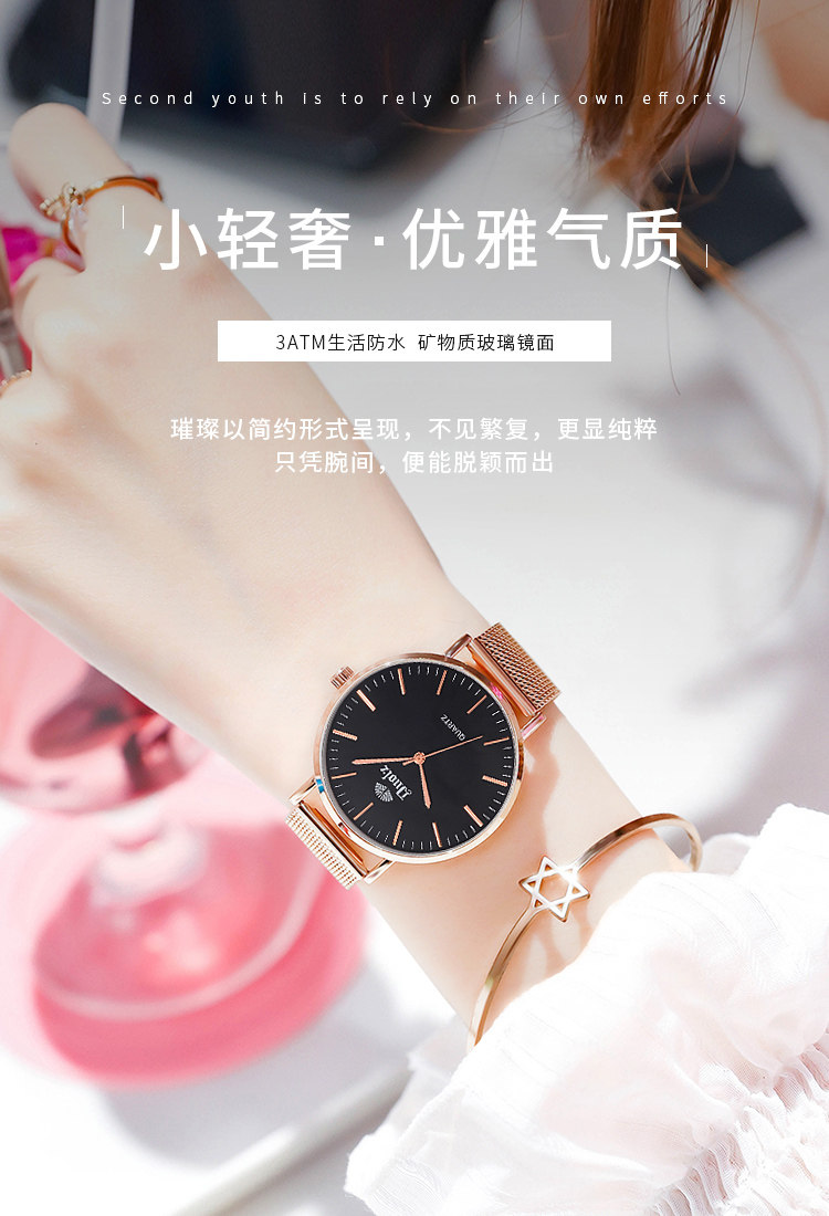 Трендовые водонепроницаемые кварцевые модные женские часы, румяна, простой и элегантный дизайн, в корейском стиле, популярно в интернете