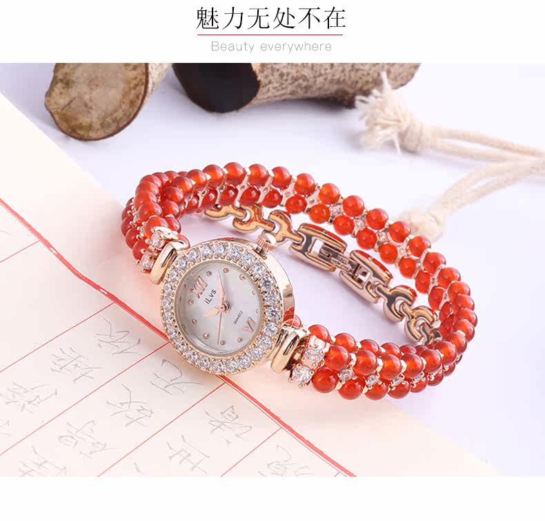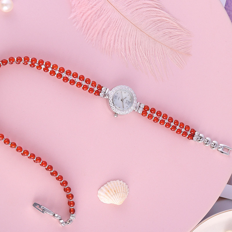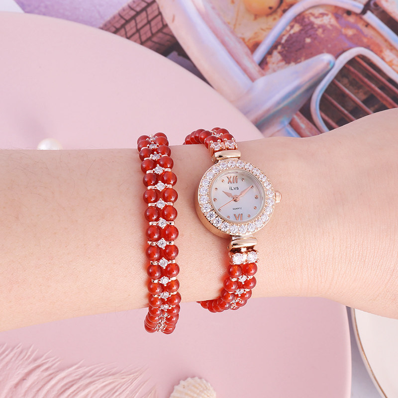 Маленький изысканный браслет, красный модный трендовый ретро циферблат, водонепроницаемые кварцевые часы из нержавеющей стали