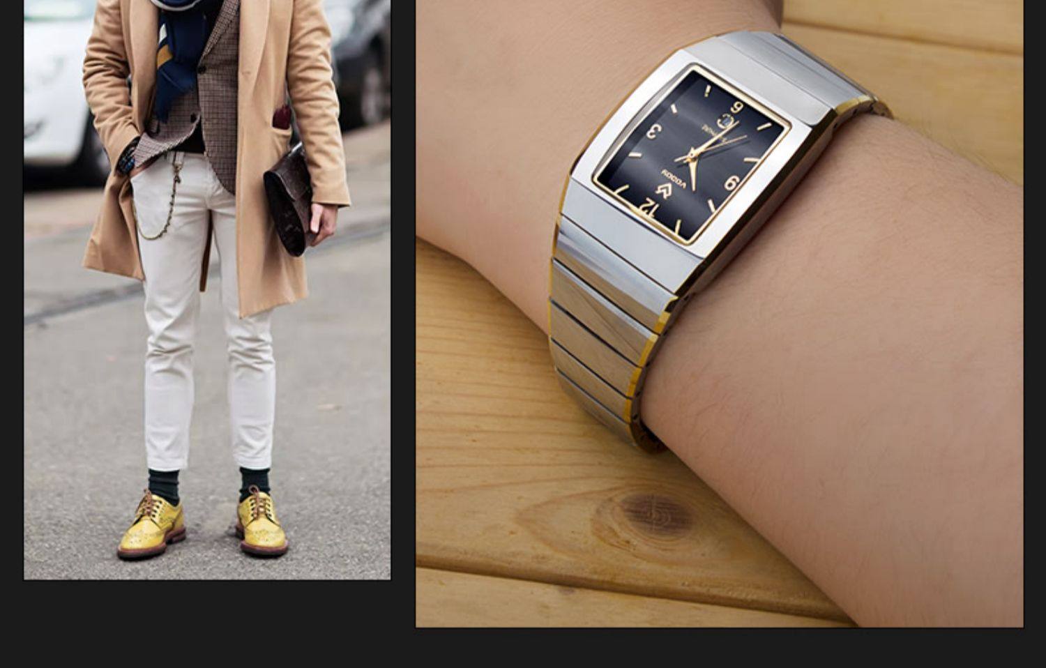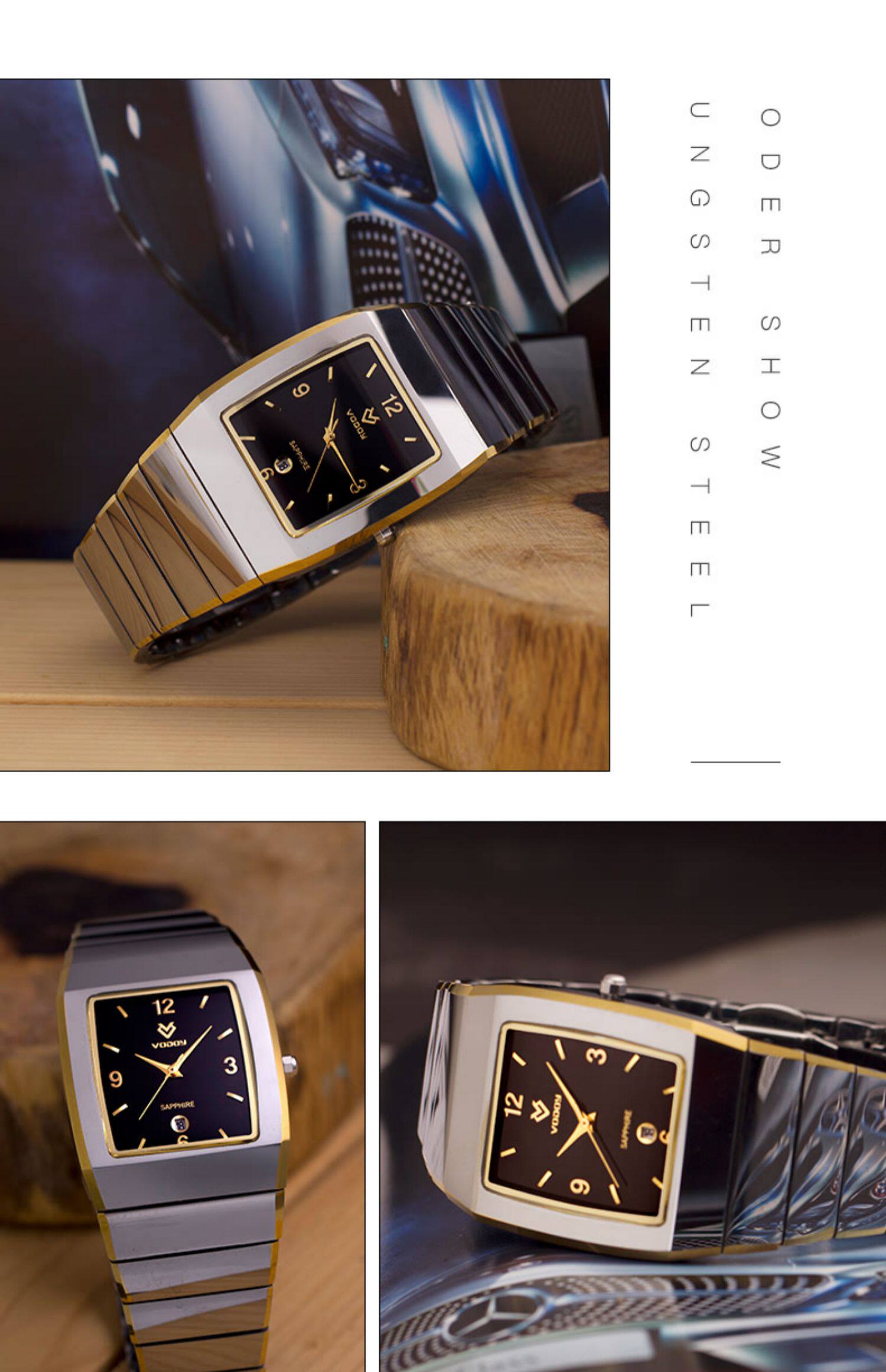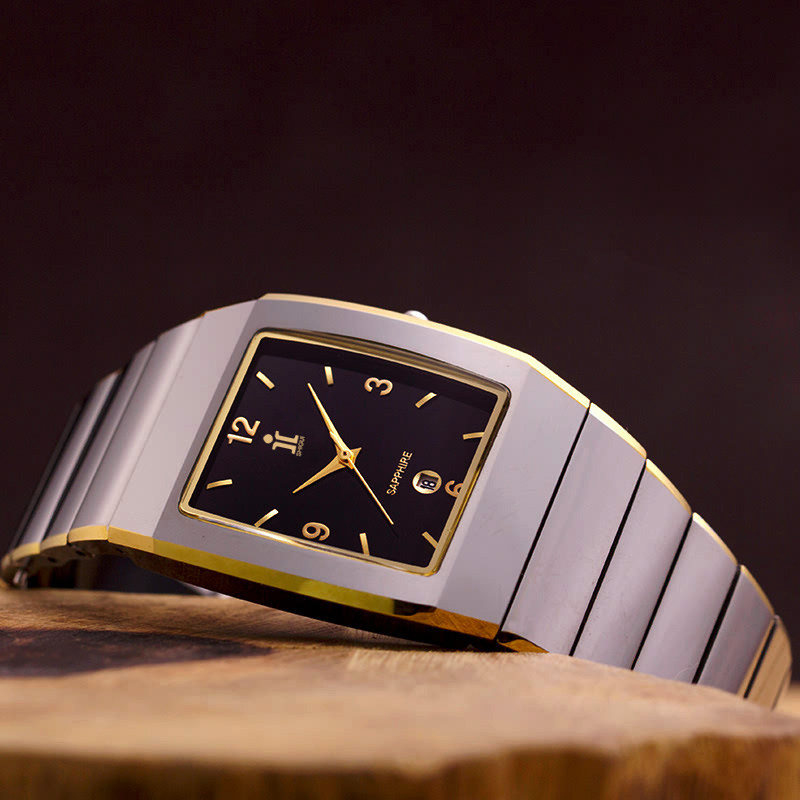 Квадратные водонепроницаемые мужские часы, модный трендовый календарь, кварцевый циферблат для отдыха, Вольфрамовая сталь, простой и элегантный дизайн