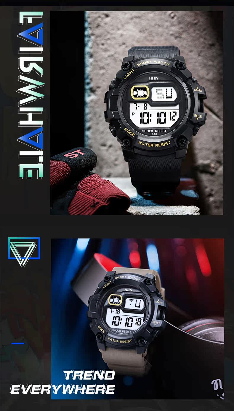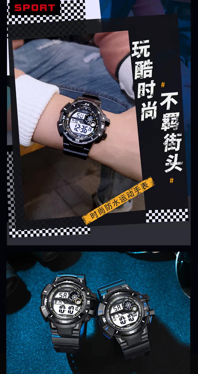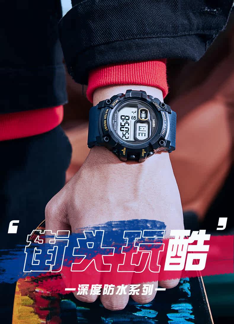 Электронные трендовые модные механические водонепроницаемые мужские часы, подходит для подростков