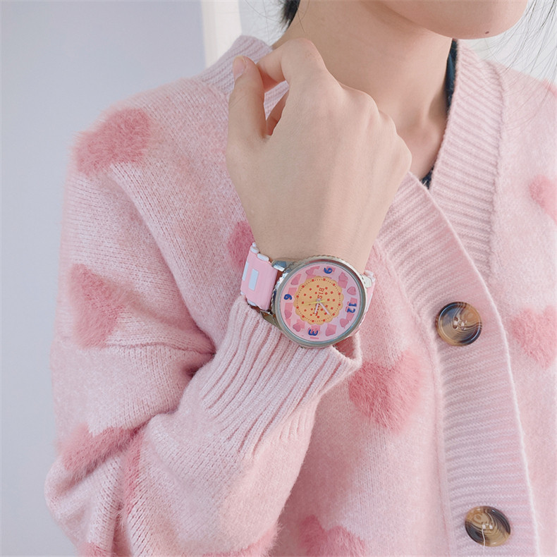 Розовые часы сердца супер милой девушки полны узоров персикового сердца