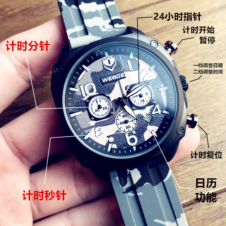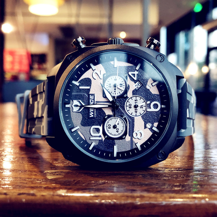Модные трендовые креативные камуфляжные мужские часы, водонепроницаемые кварцевые часы