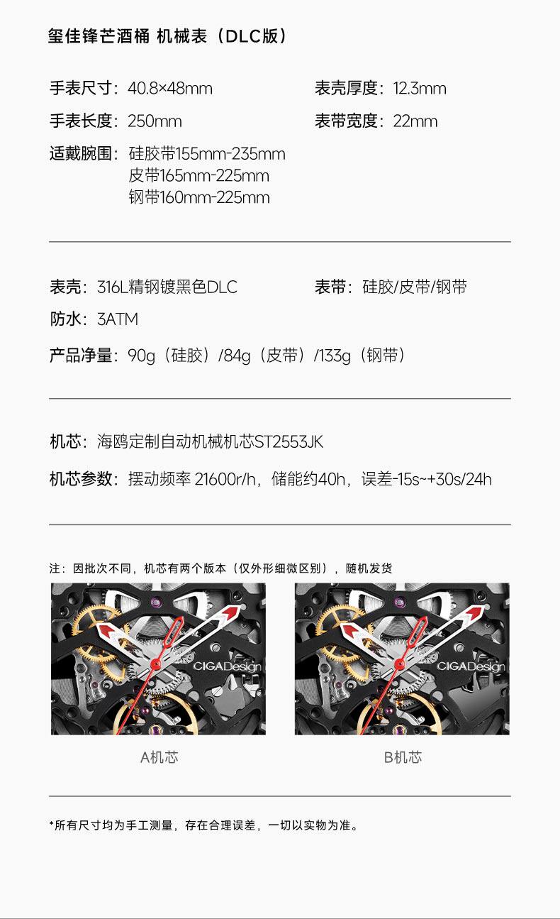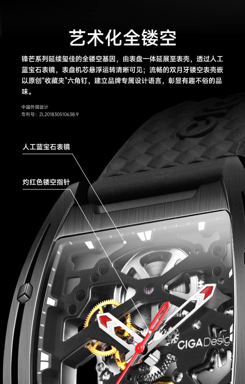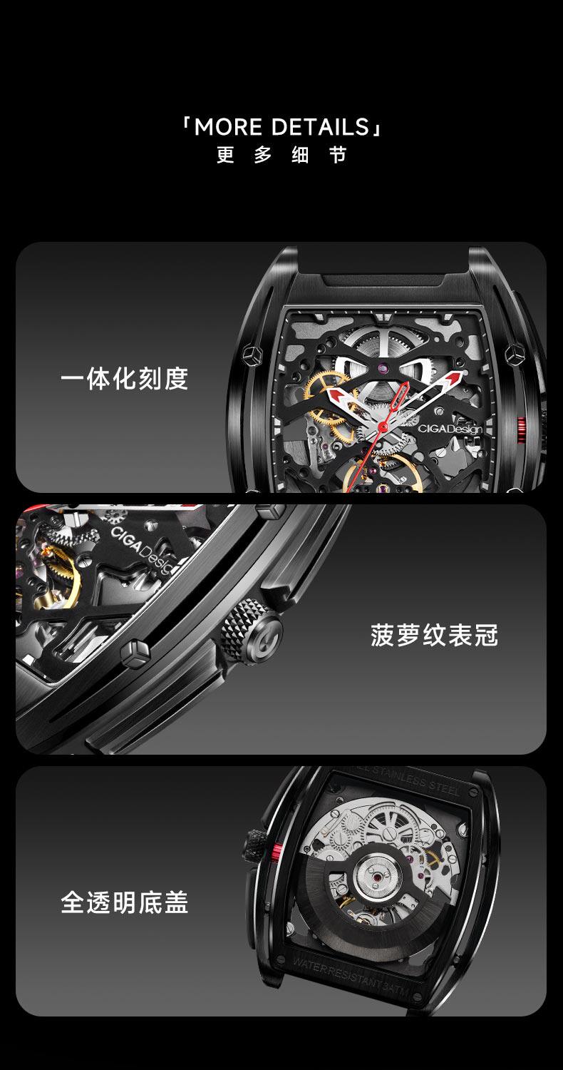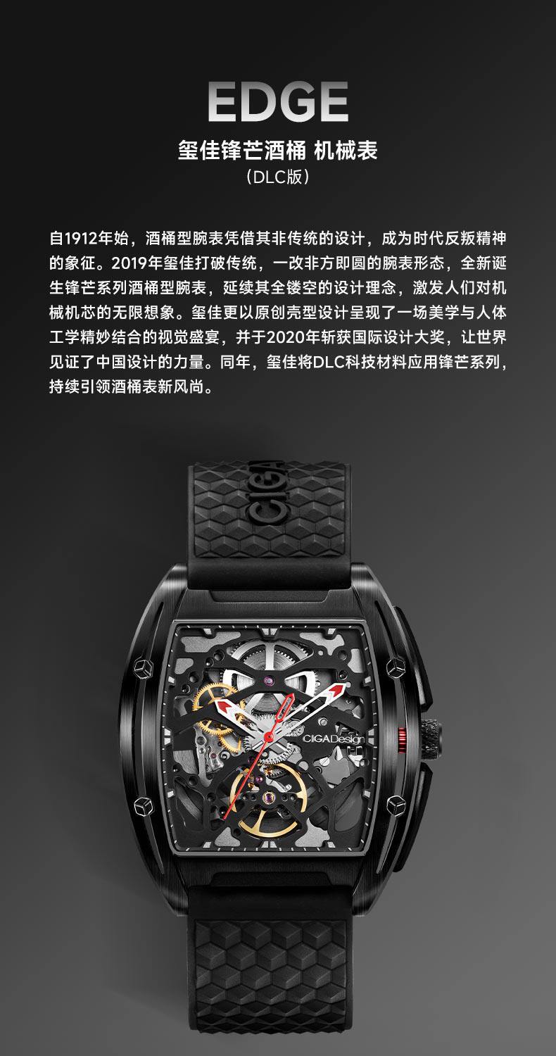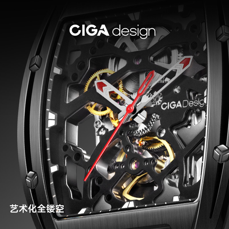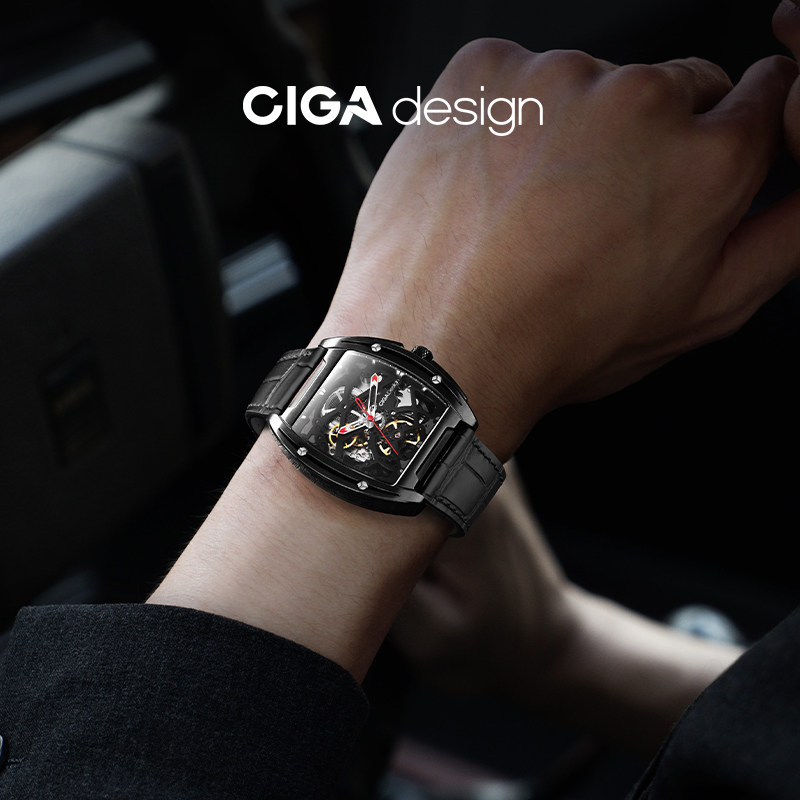 Ciga Design Xijia Mechanical Watch Z Series Sharp DLC Wine Barrel Barrel Hollow Men's Watch Trendy Business Watch