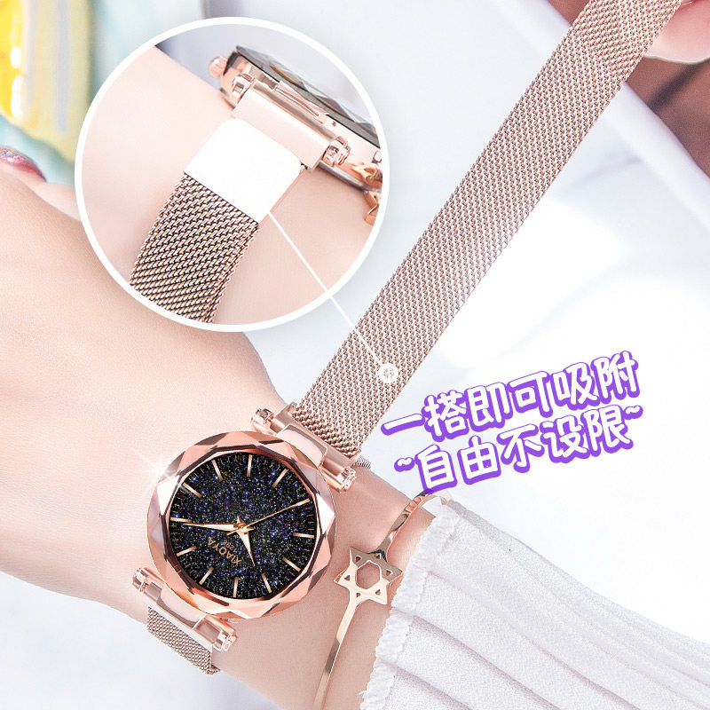 Водонепроницаемые швейцарские часы для школьников, модное механическое кварцевое звездное небо, простой и элегантный дизайн, в корейском стиле, популярно в интернете