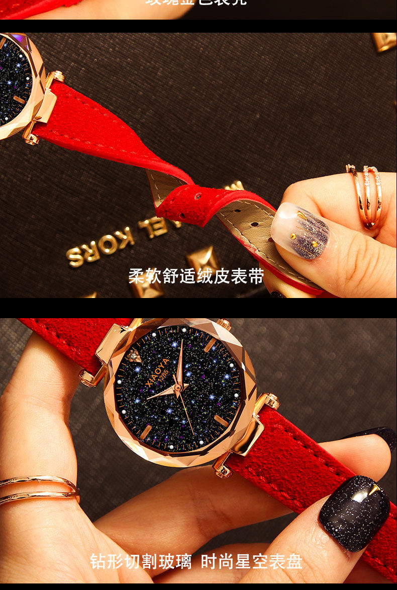 Швейцарские часы для школьников, водонепроницаемое модное механическое кварцевое звездное небо, простой и элегантный дизайн, популярно в интернете, женский стиль