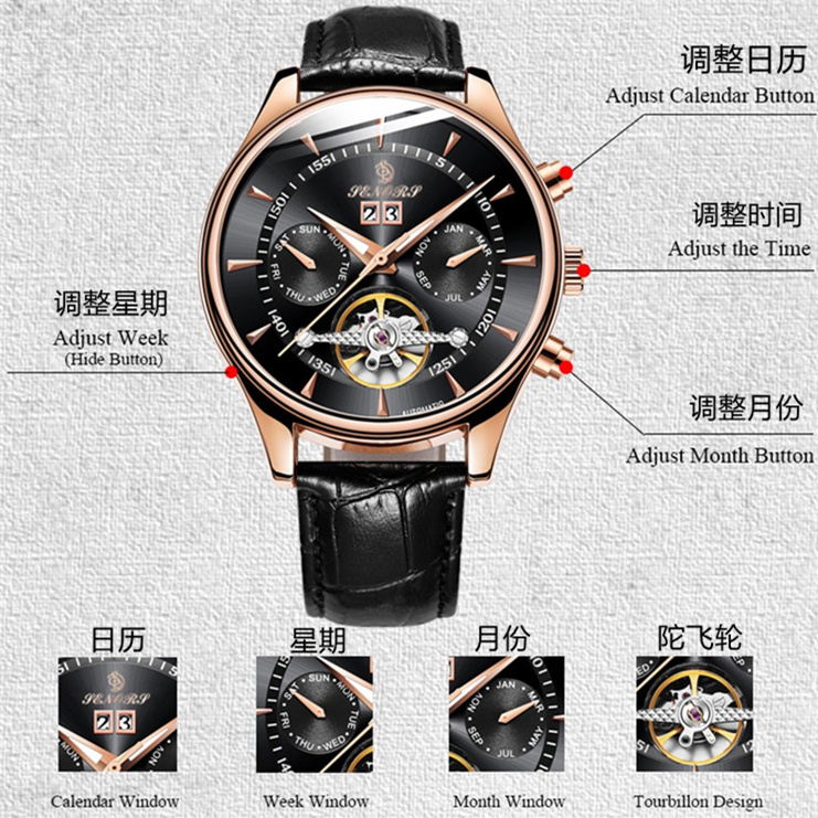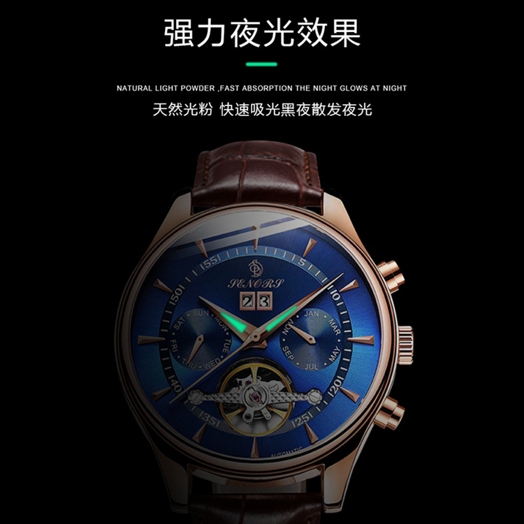 Мужские часы, механический ремень, трендовые неоновые водонепроницаемые механические часы, полностью автоматический