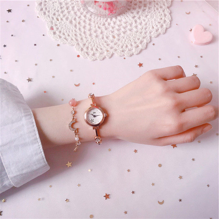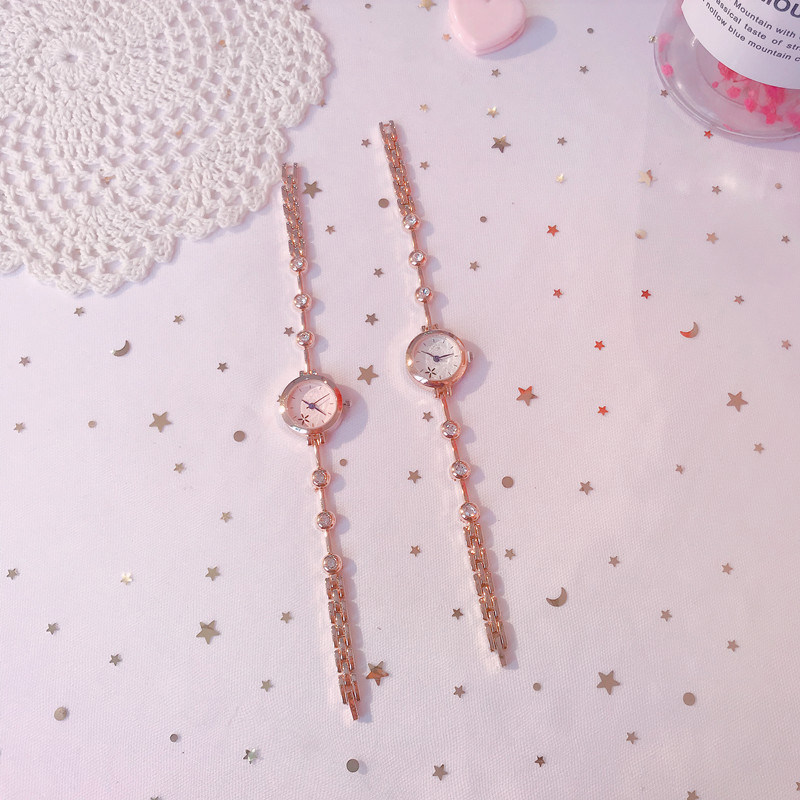 Часы, браслет, комплект, маленький изысканный брендовый механический свежий циферблат, маленький циферблат, простой и элегантный дизайн, в корейском стиле