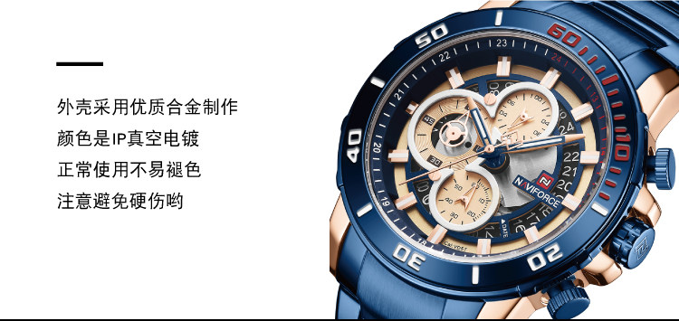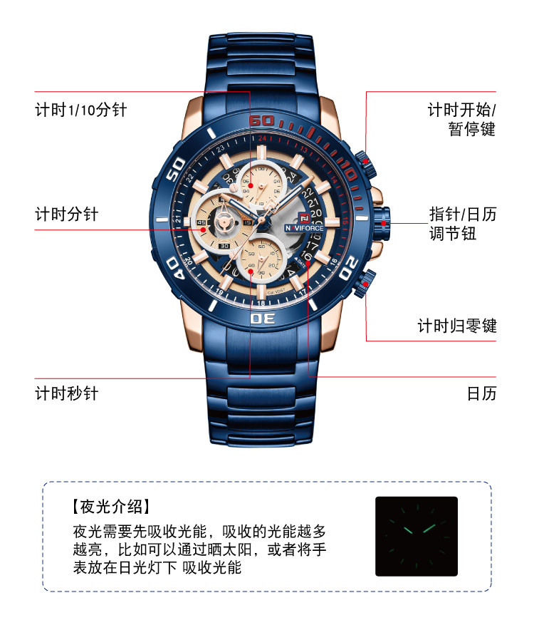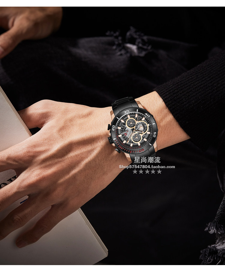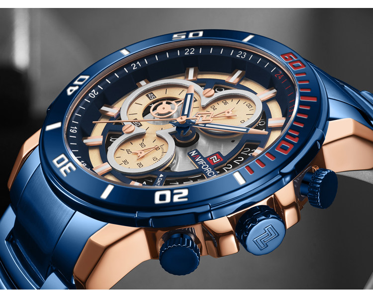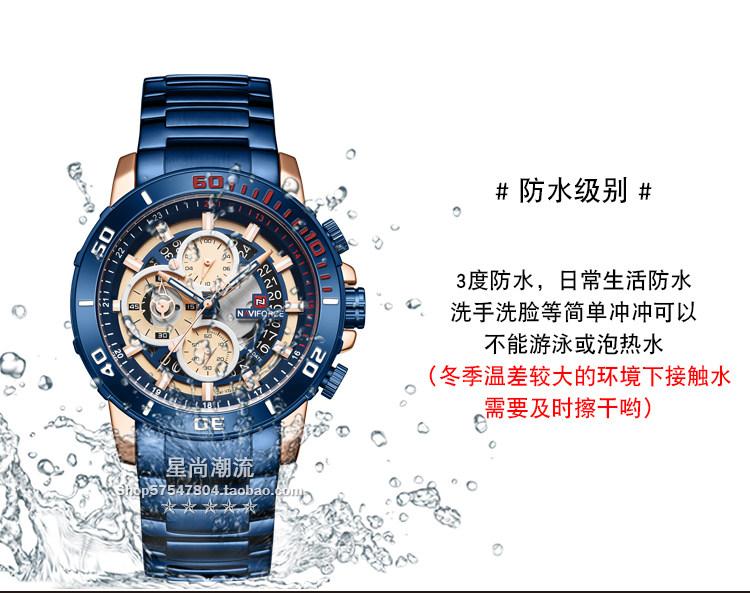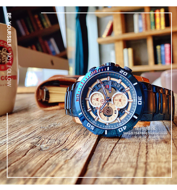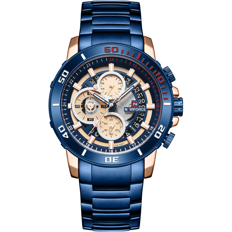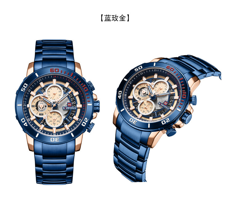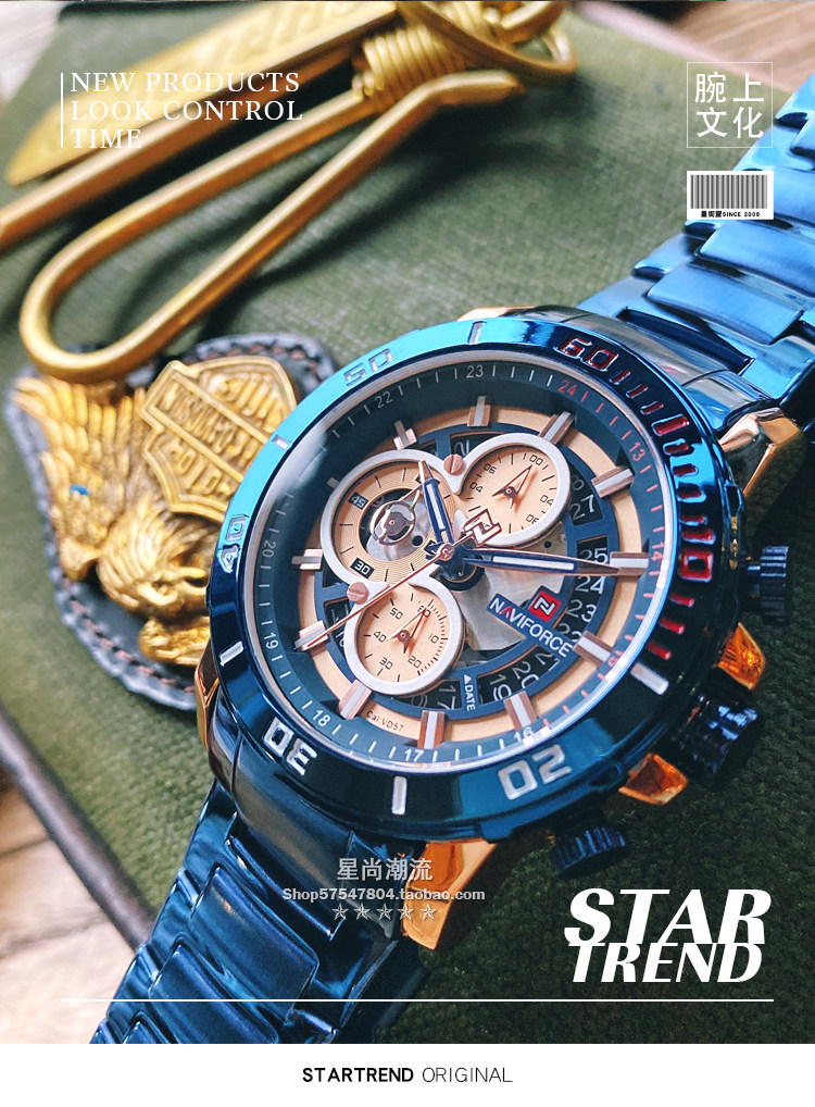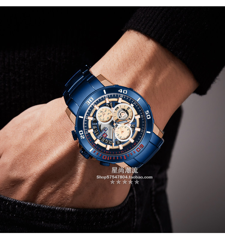 Модный трендовый стальной ремешок, синий циферблат, мужские часы, европейский стиль
