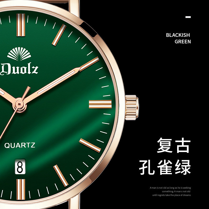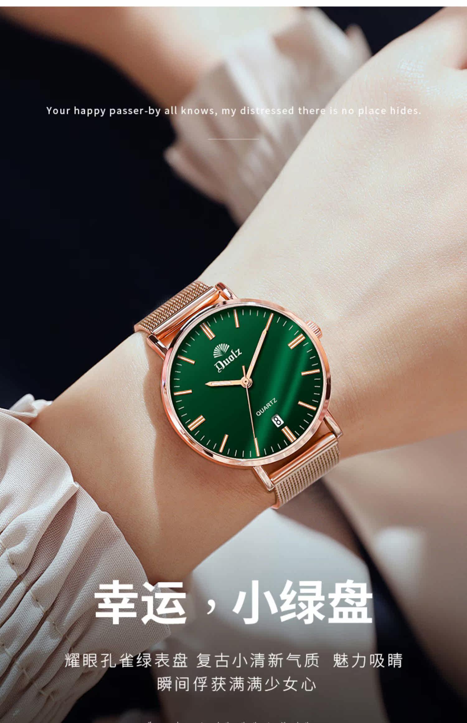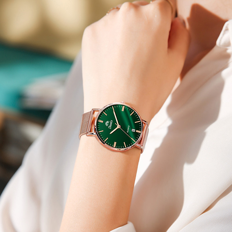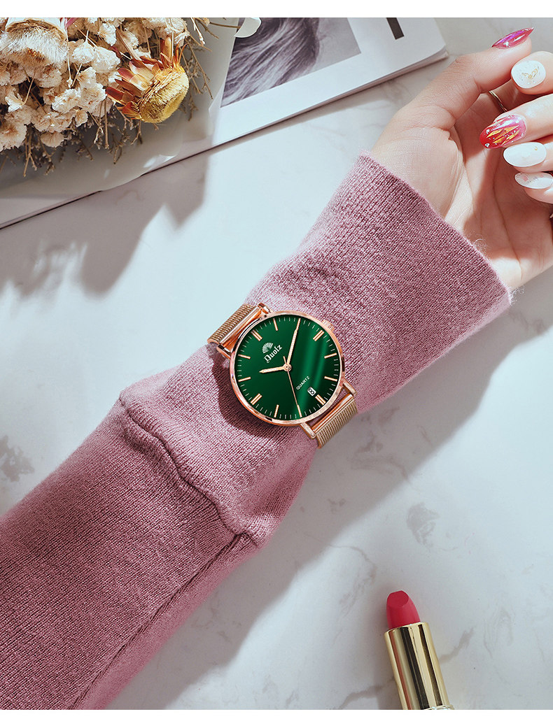 - Золотой малахитовый зелёный стальной ремешок, розовое золото