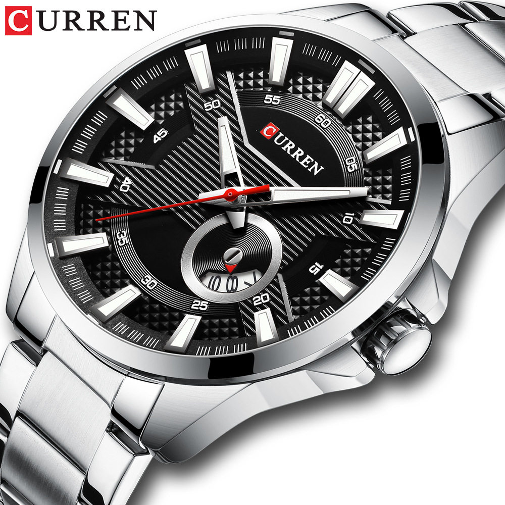 Водонепроницаемые швейцарские часы, кварцевый стальной ремешок, календарь для отдыха, мужские часы