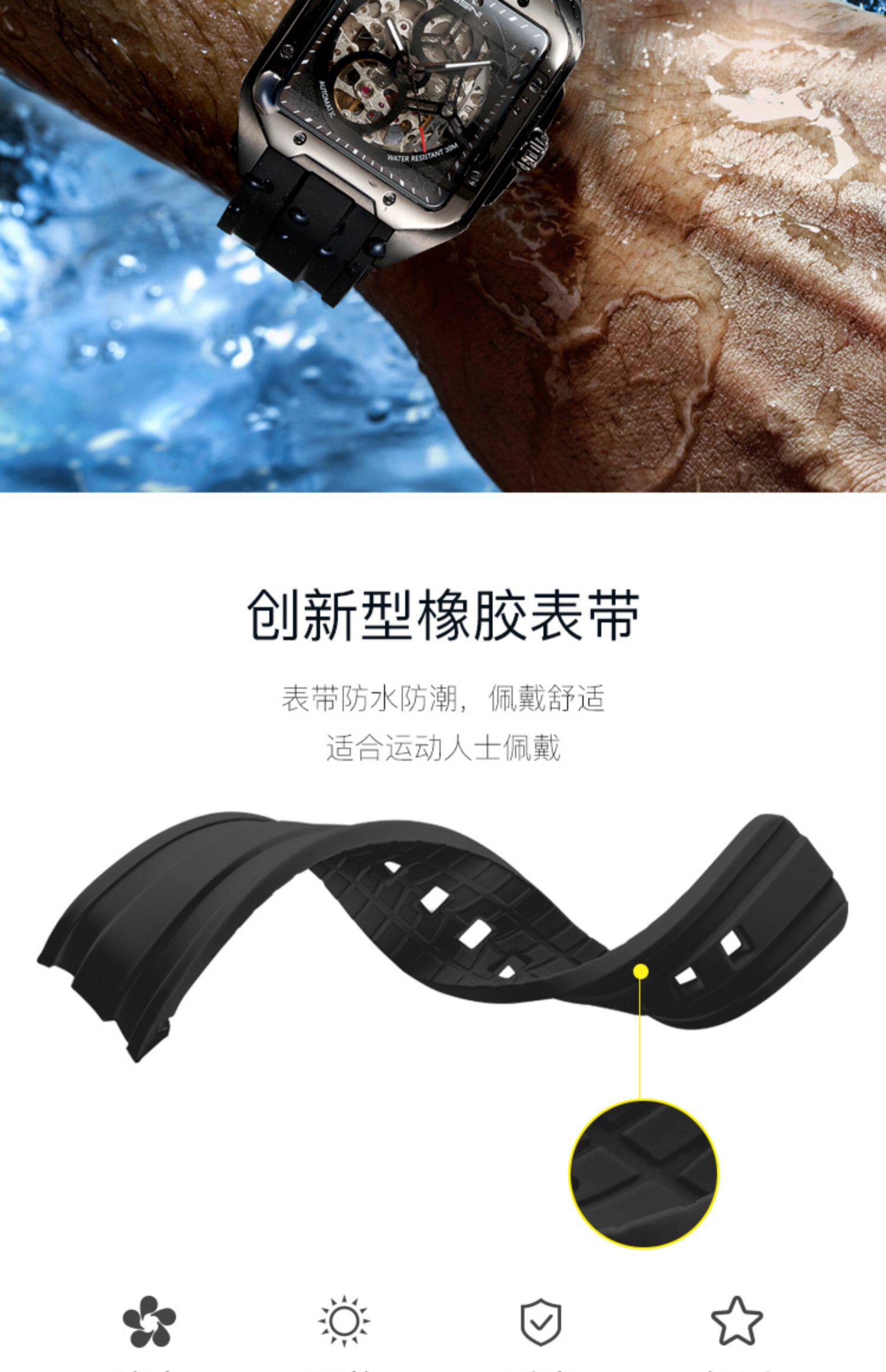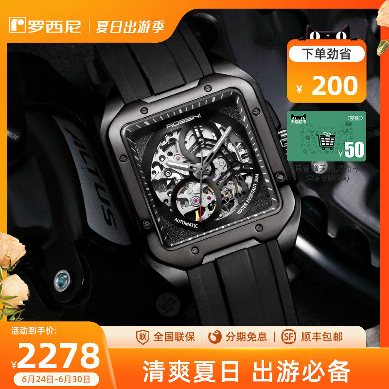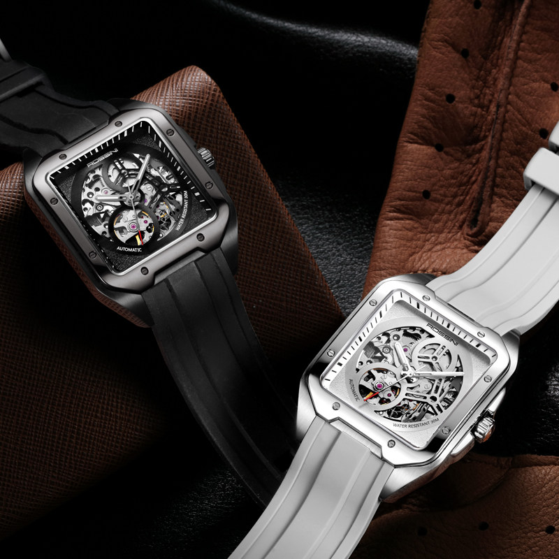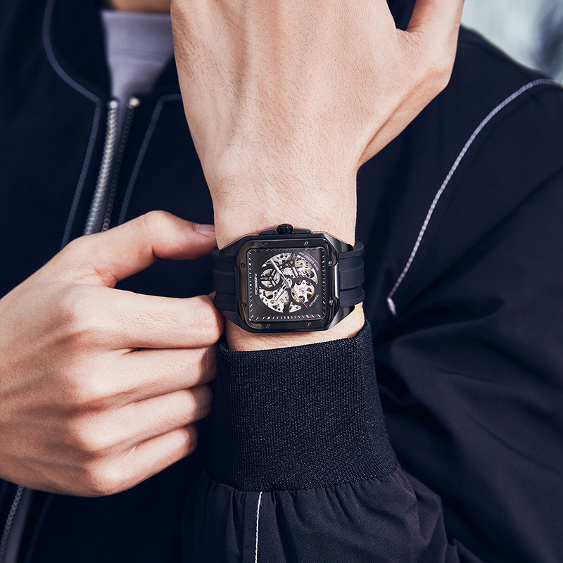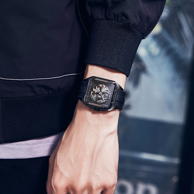 [Серия изображений] Rosini Watch Мужские механические часы спортивные спортивные квадратные водонепроницаемые подлинные полые часы 120433