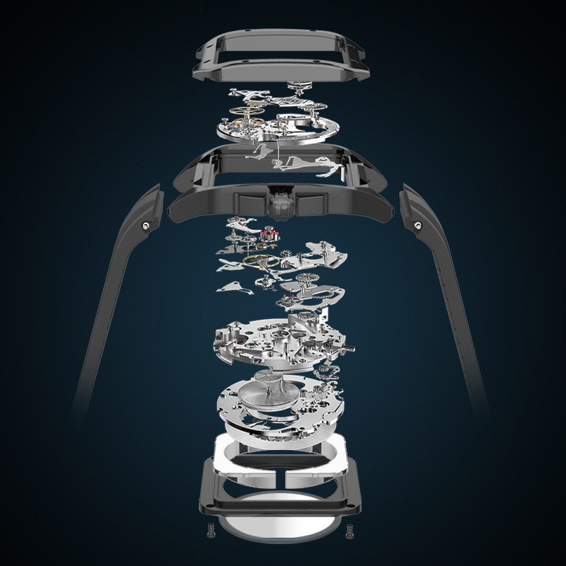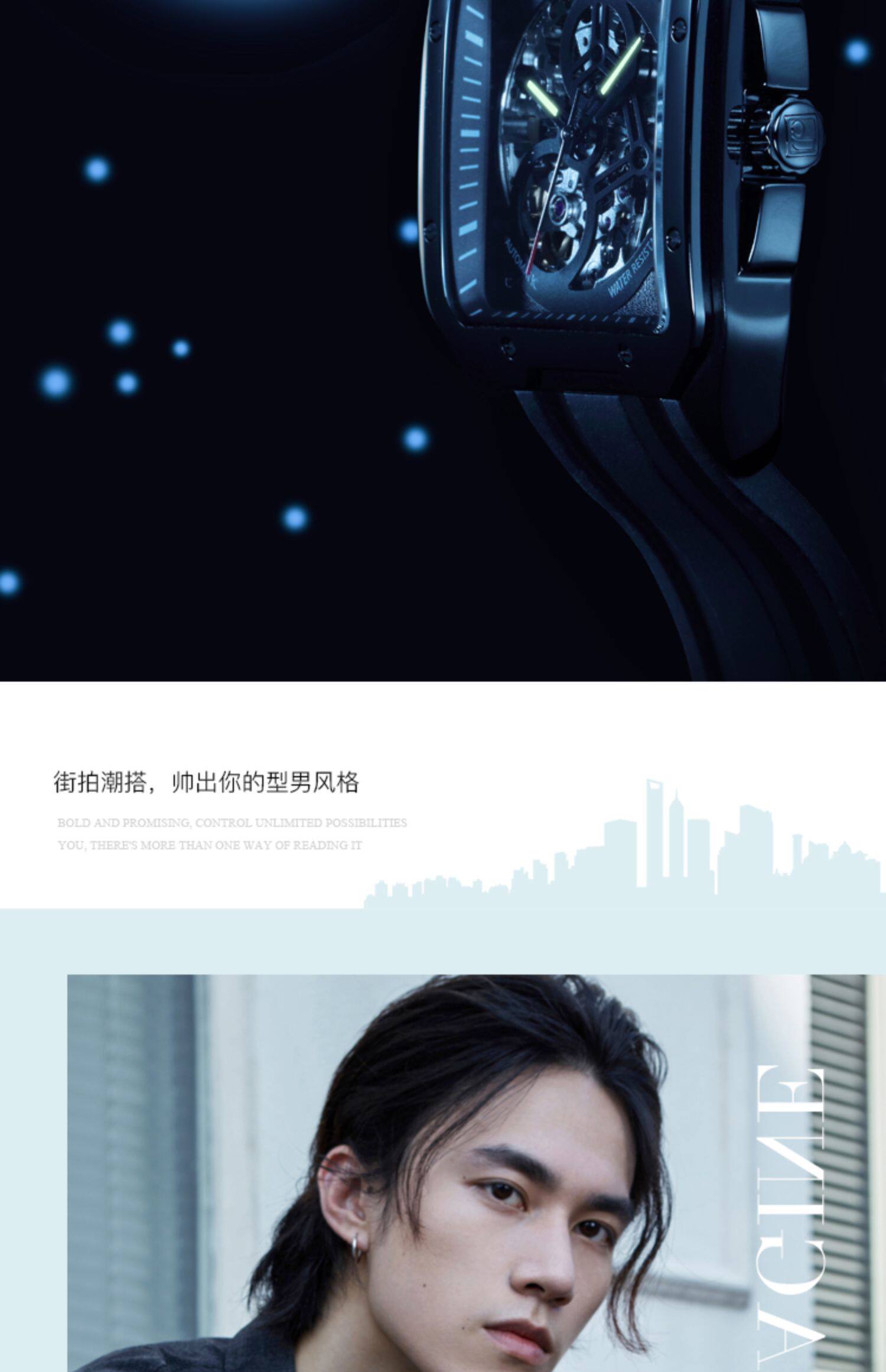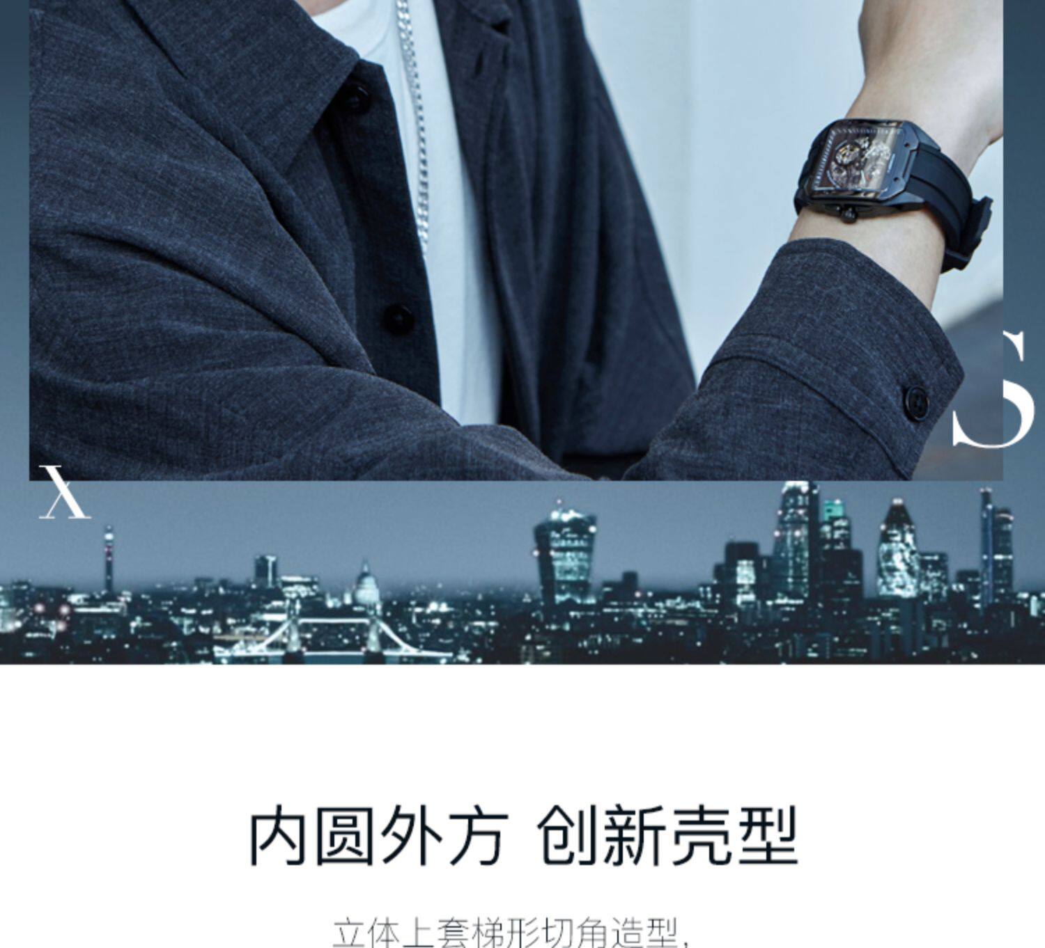 [Серия изображений] Rosini Watch Мужские механические часы спортивные спортивные квадратные водонепроницаемые подлинные полые часы 120433