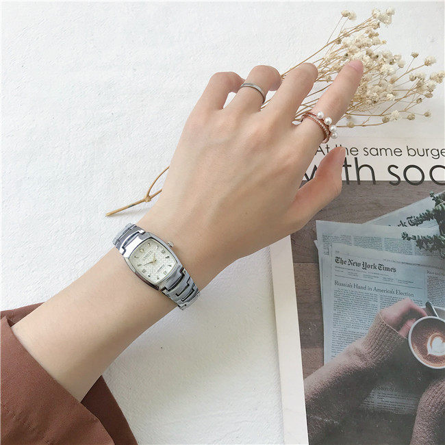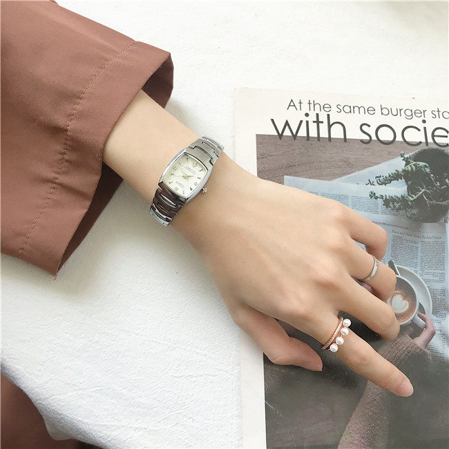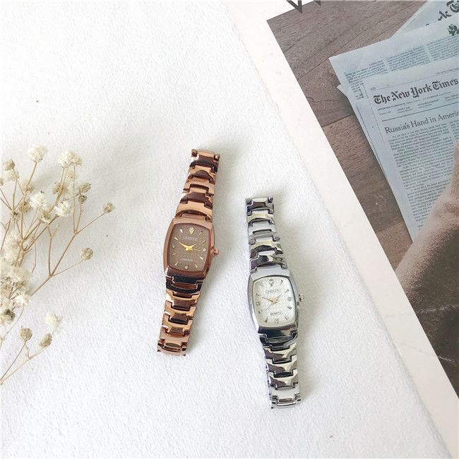 Цепь, квадратный стальной ремешок, часы для школьников, брендовый водонепроницаемый ретро циферблат, простой и элегантный дизайн, маленький циферблат