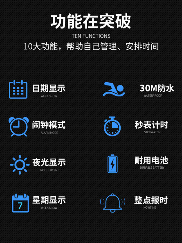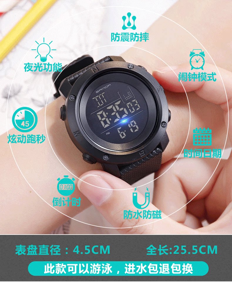 Универсальные дорожные водонепроницаемые трендовые электронные часы, защита при падении, популярно в интернете