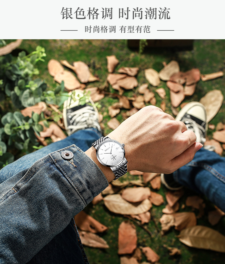Простые мужские автоматические механические часы, редкие тонкие механические часы всего 9,5 мм, отличающиеся от традиционного тяжелого смысла, индивидуального независимого маленького циферблата, с единичным календарным функцией и стильной, водонепроницаемая функция в повседневном использовании имеет важное значение. Ежедневное использование и бесплатное беспокойство, высокая высокая поверхность минерального синтетического зеркала, сопротивление царапин и сопротивление износа сопровождается.