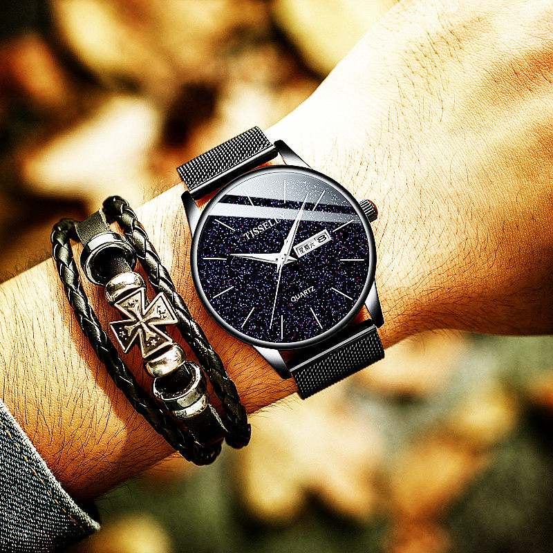 Модные кварцевые водонепроницаемые универсальные мужские часы, календарь