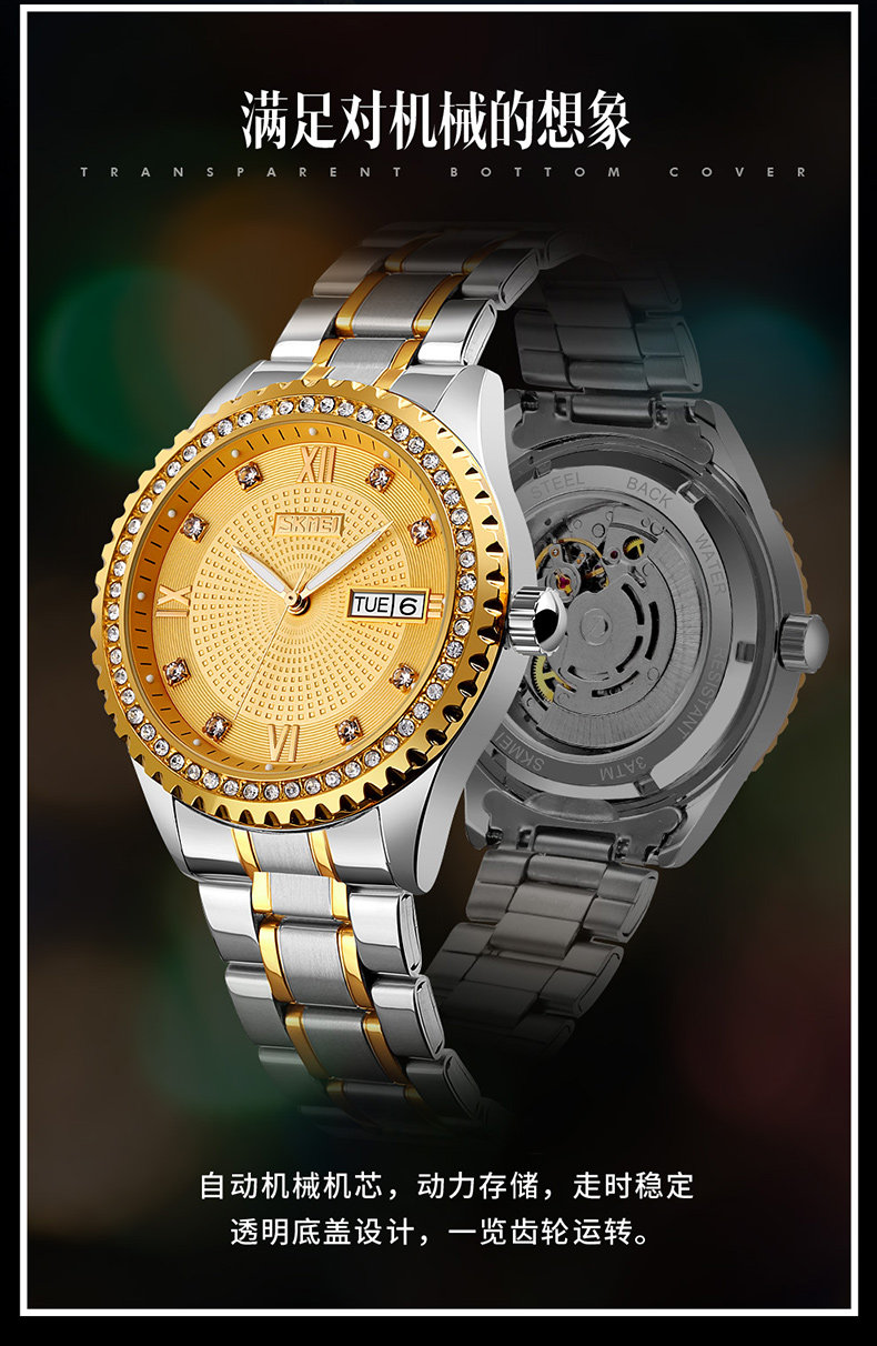 Классические модные мужские часы, механические механические часы, водонепроницаемый стальной ремешок, полностью автоматический