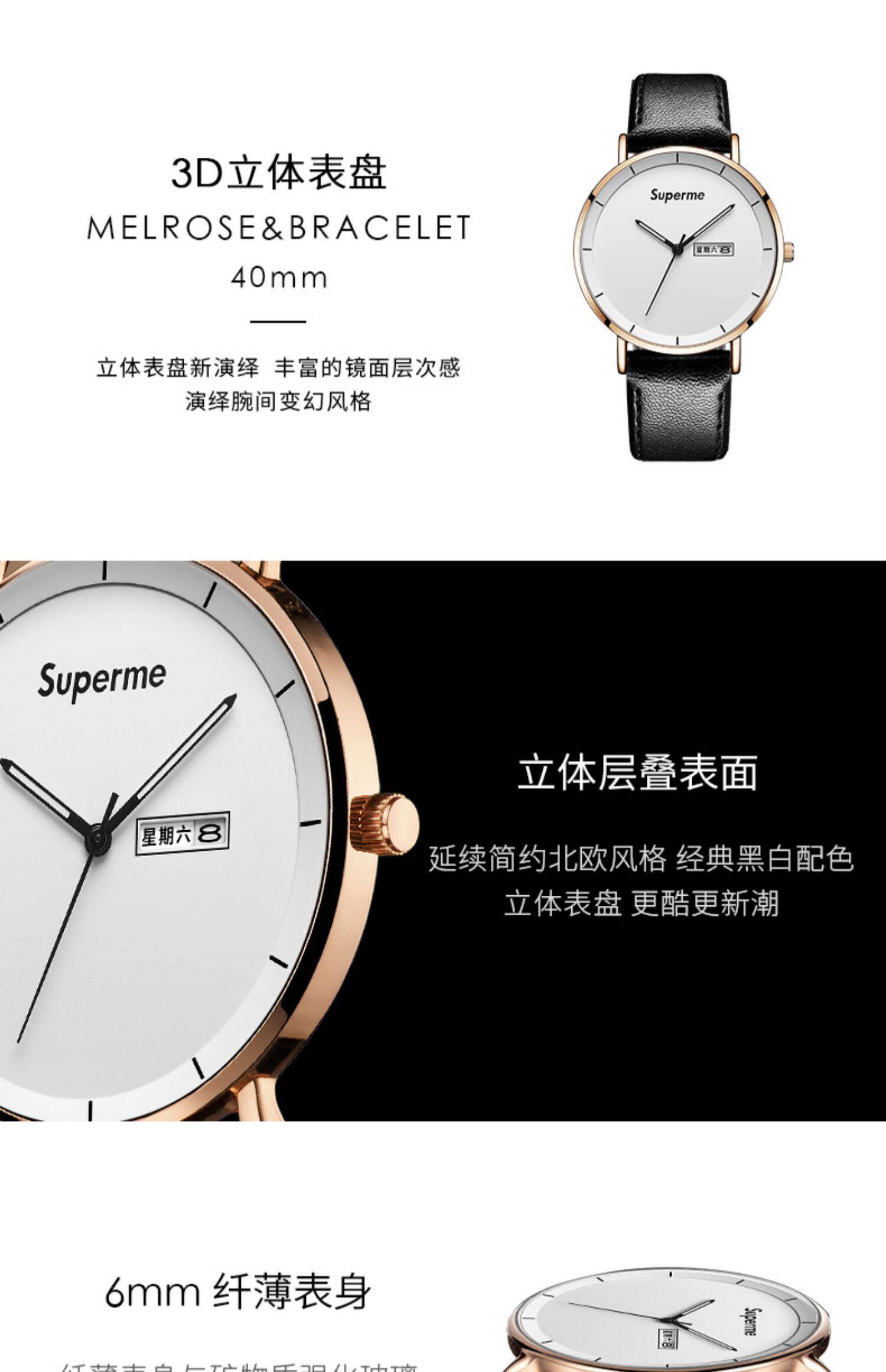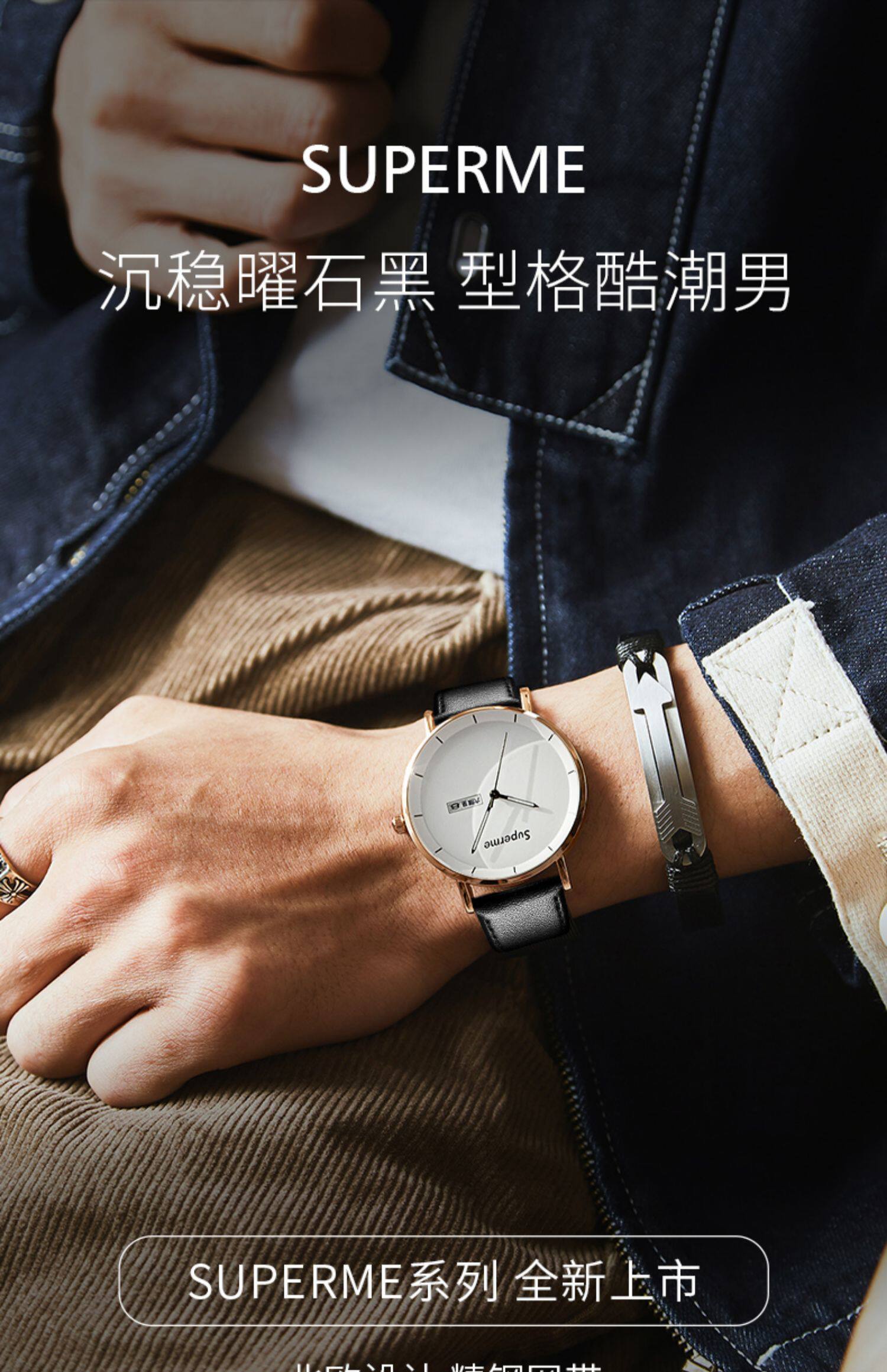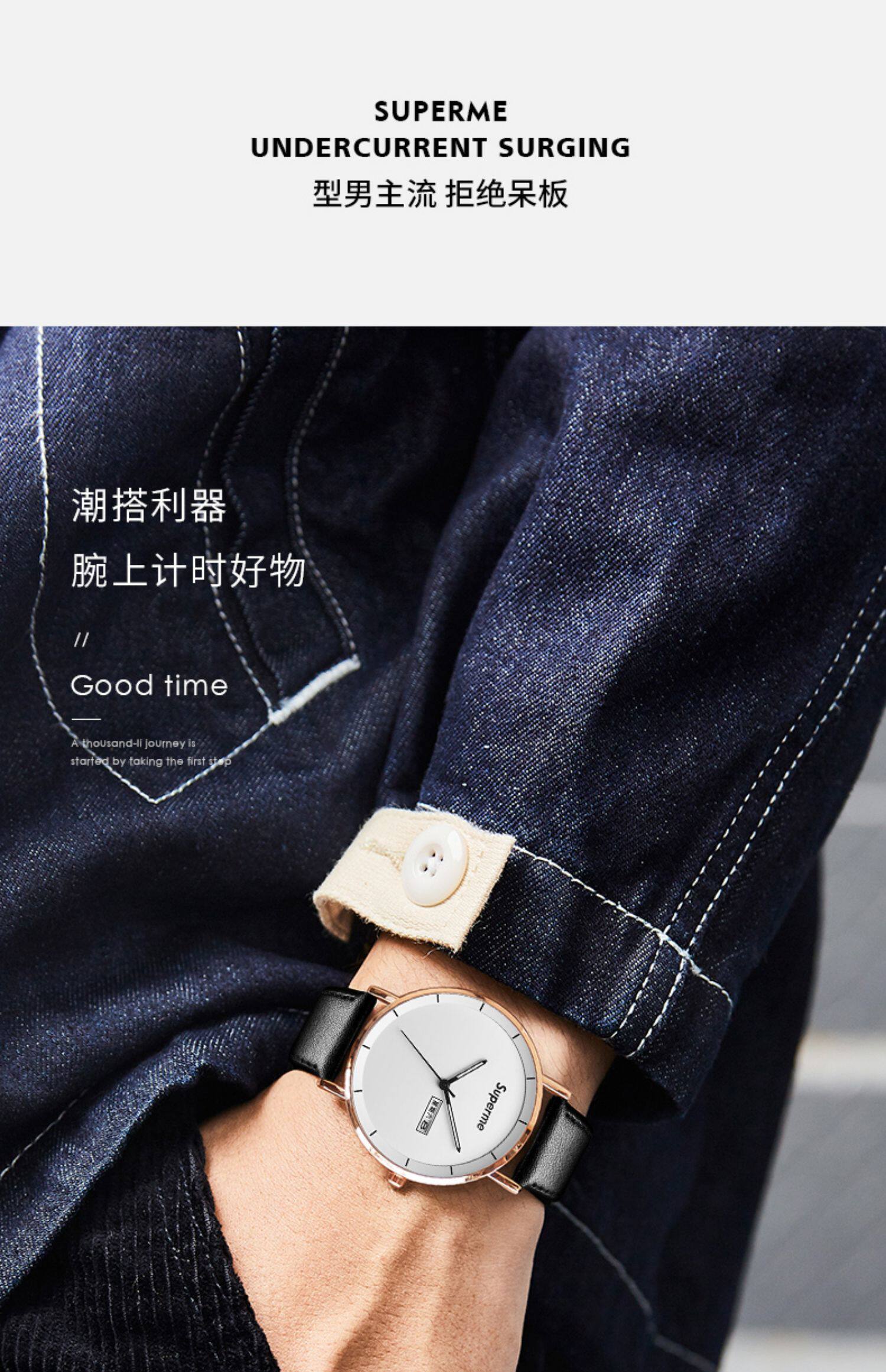 TikTok, ультратонкие мужские часы, водонепроницаемые кварцевые часы, полностью автоматический, для средней школы