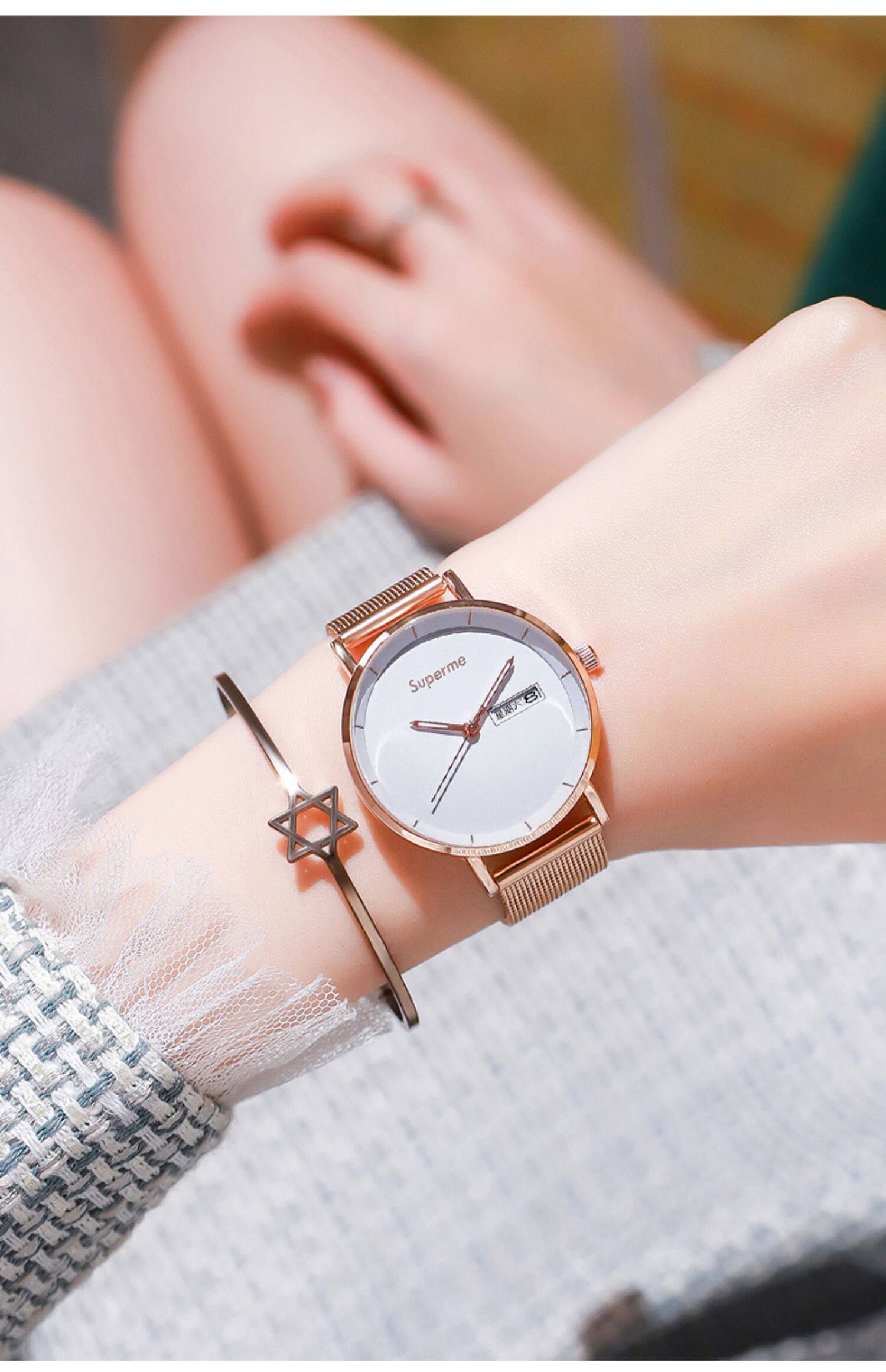 Модные механические трендовые водонепроницаемые брендовые кварцевые часы, простой и элегантный дизайн, в корейском стиле