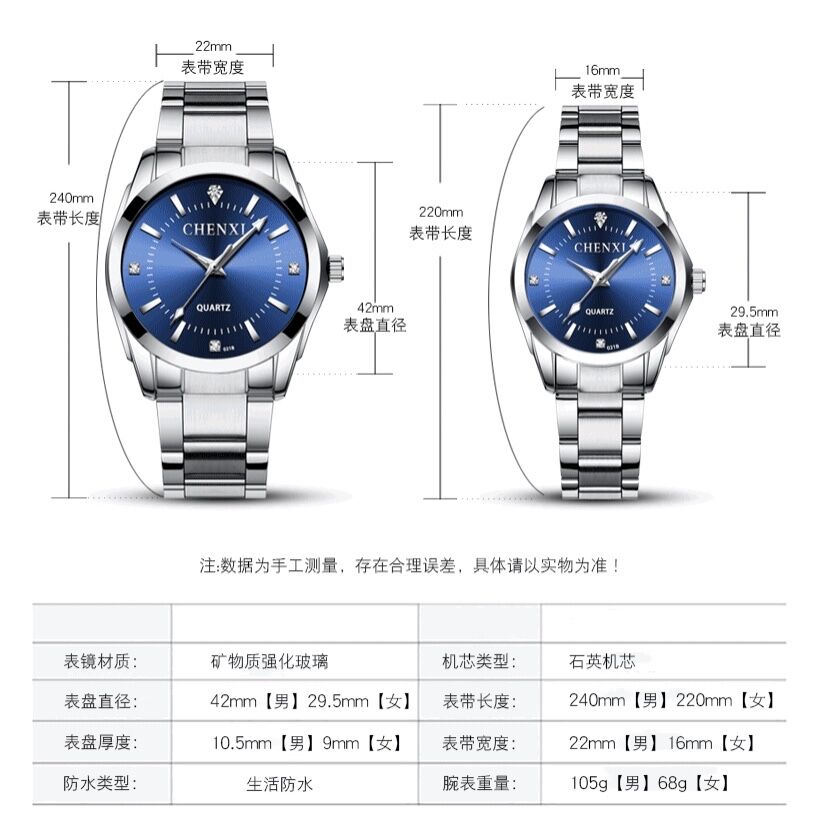 Мужские часы для отдыха подходит для мужчин и женщин, водонепроницаемый стальной ремешок, брендовые кварцевые часы, парные часы для влюбленных, простой и элегантный дизайн, популярно в интернете