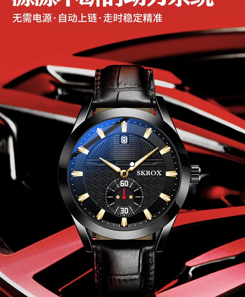 SKROX (Трансграничная торговля), водонепроницаемый календарь в гоночном стиле, дизайнерский автоматический стальной ремешок из нержавеющей стали, механические механические часы, мужские часы, полностью автоматический