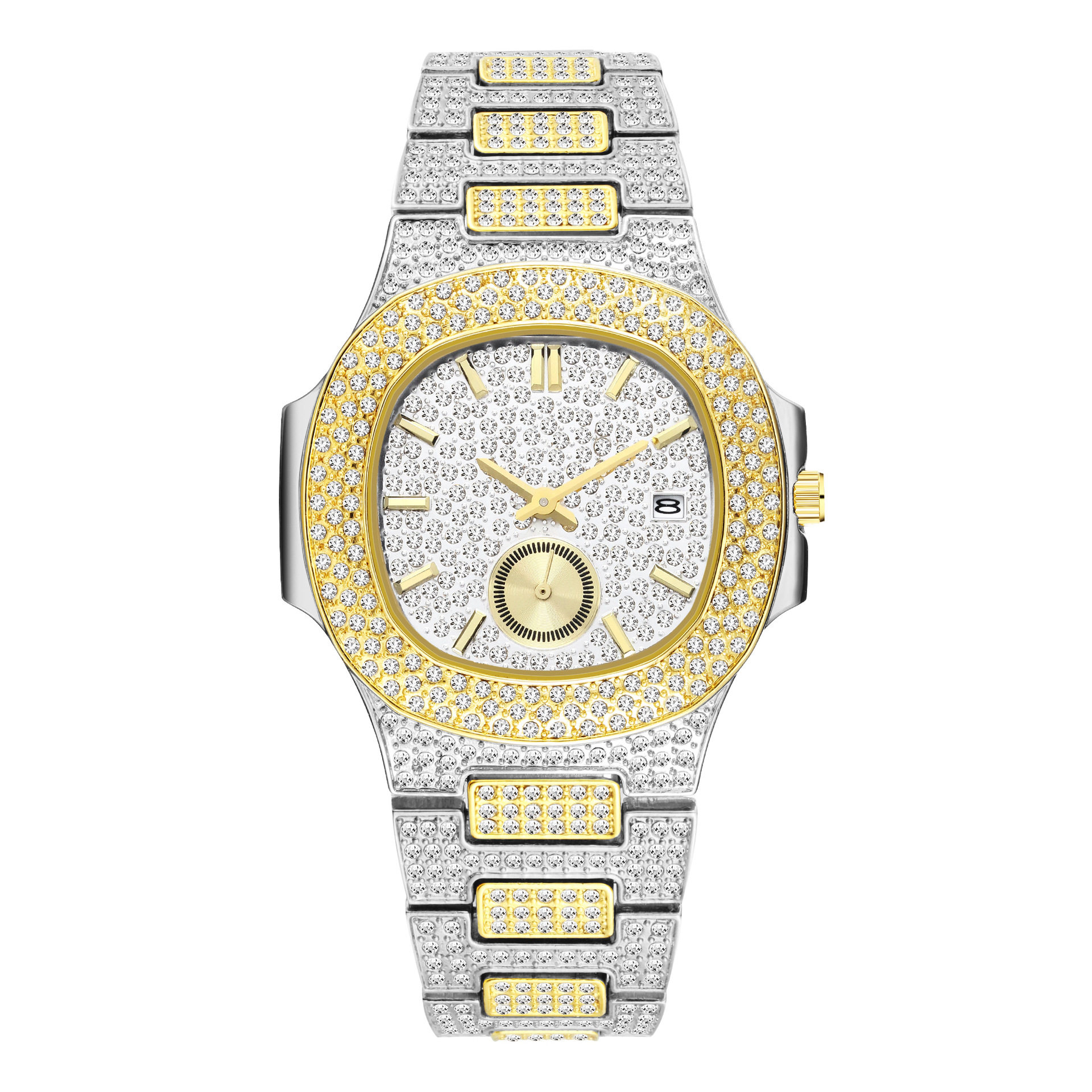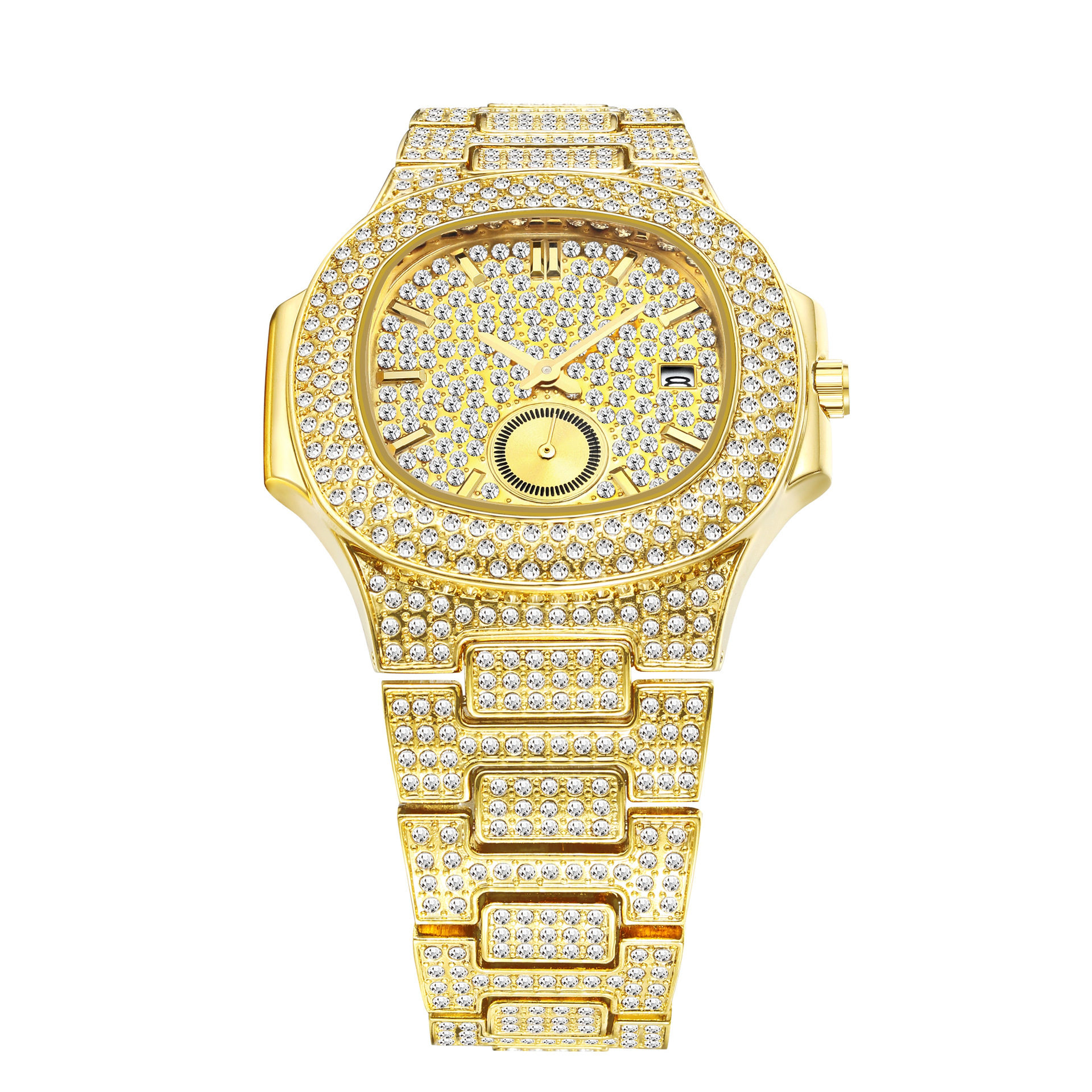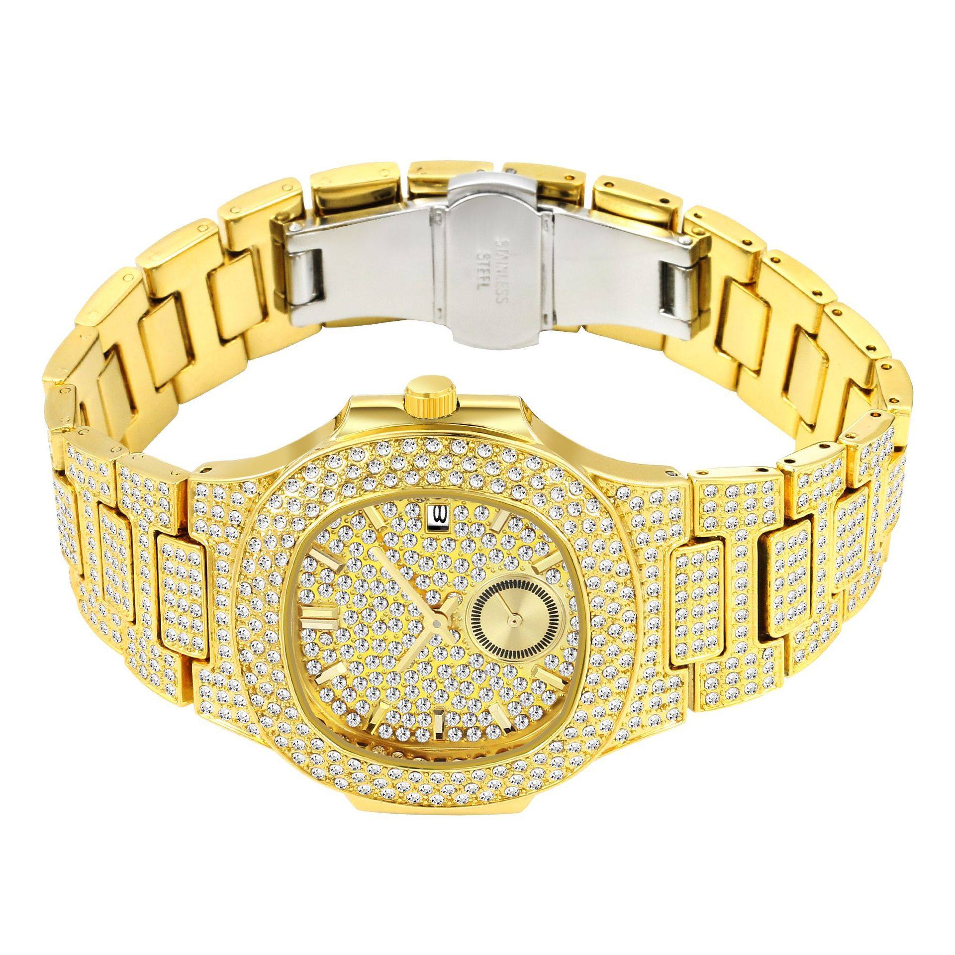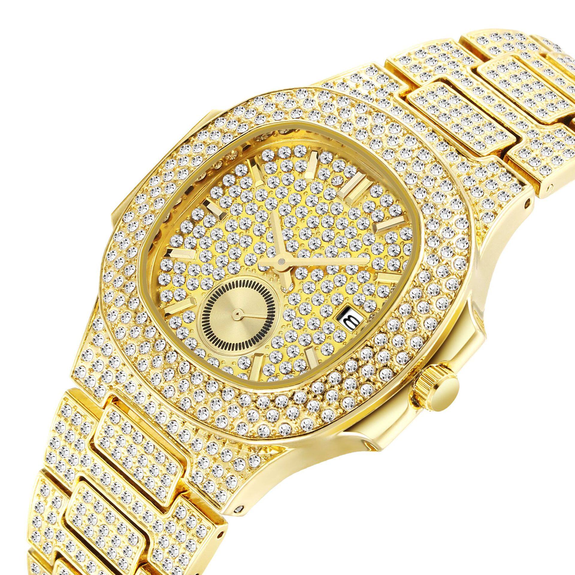 Мужской циферблат в стиле хип-хоп, золотая бриллиантовая инкрустация камня, календарь, кварцевые часы, европейский стиль, инкрустировано бриллиантами, делается под заказ