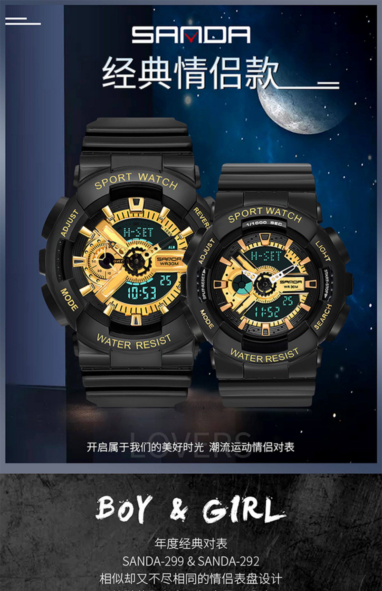 Высококачественные механические водонепроницаемые электронные часы для влюбленных подходит для мужчин и женщин
