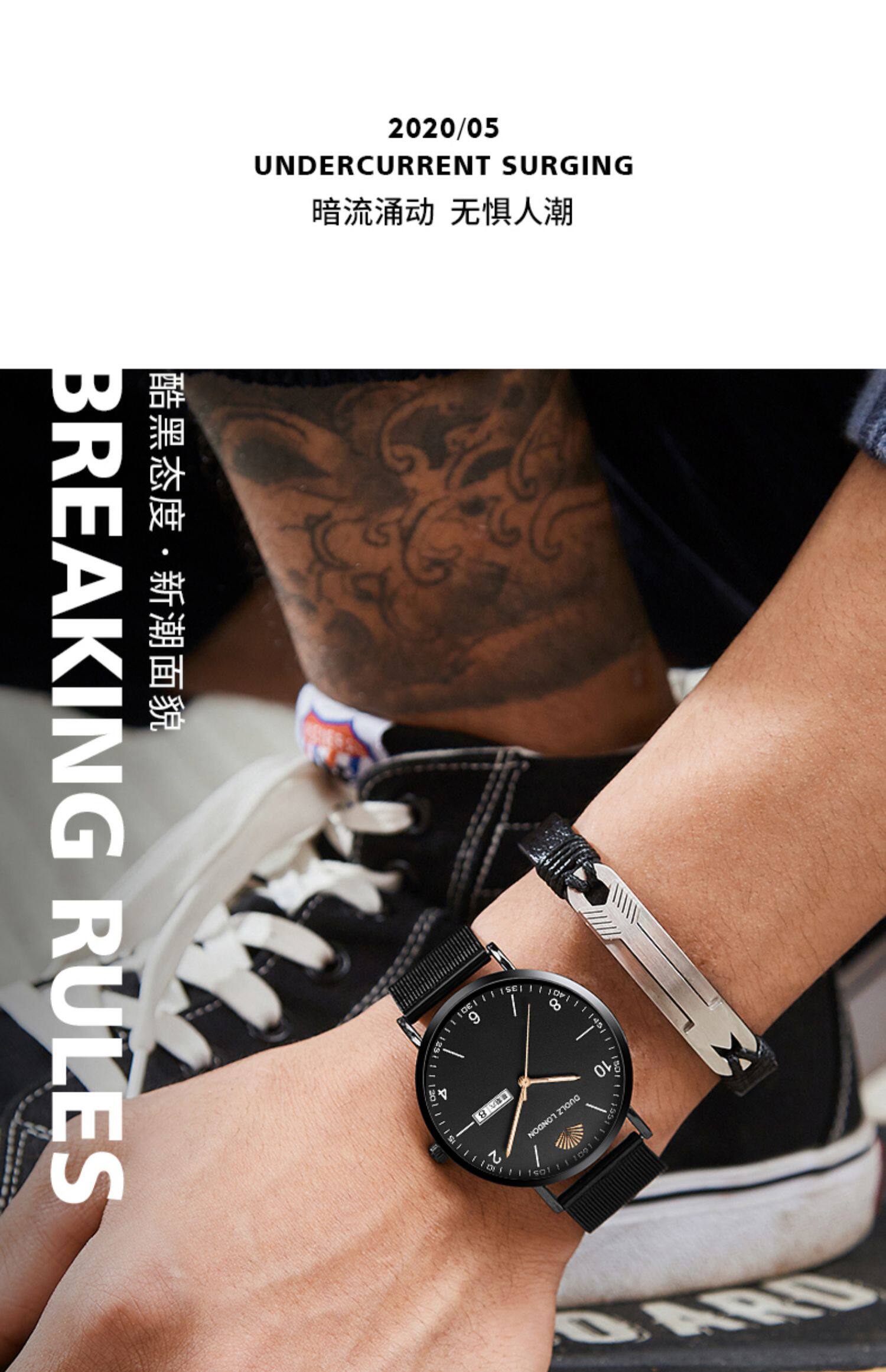 Мужские часы для влюбленных подходит для мужчин и женщин, механические трендовые водонепроницаемые электронные кварцевые часы, простой и элегантный дизайн