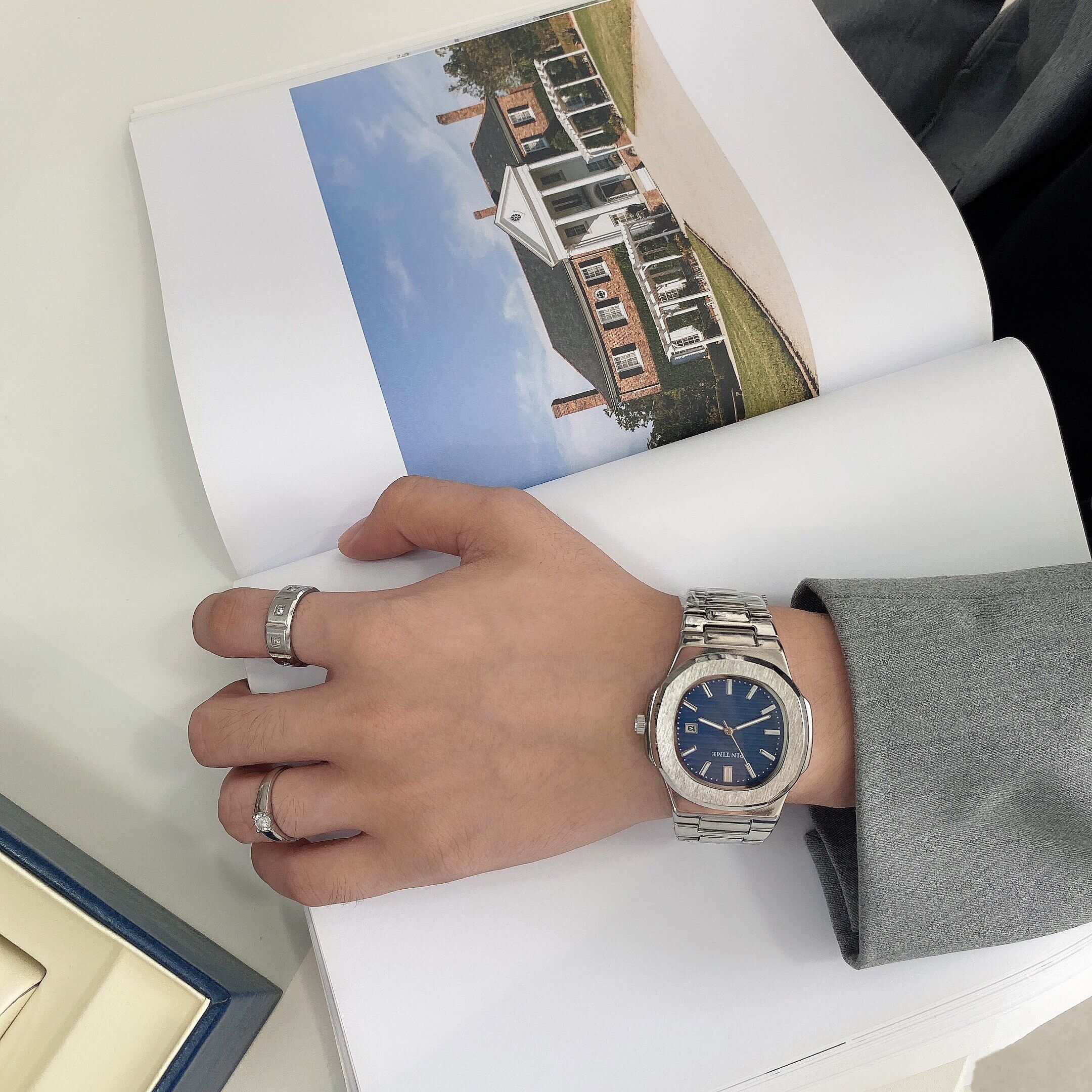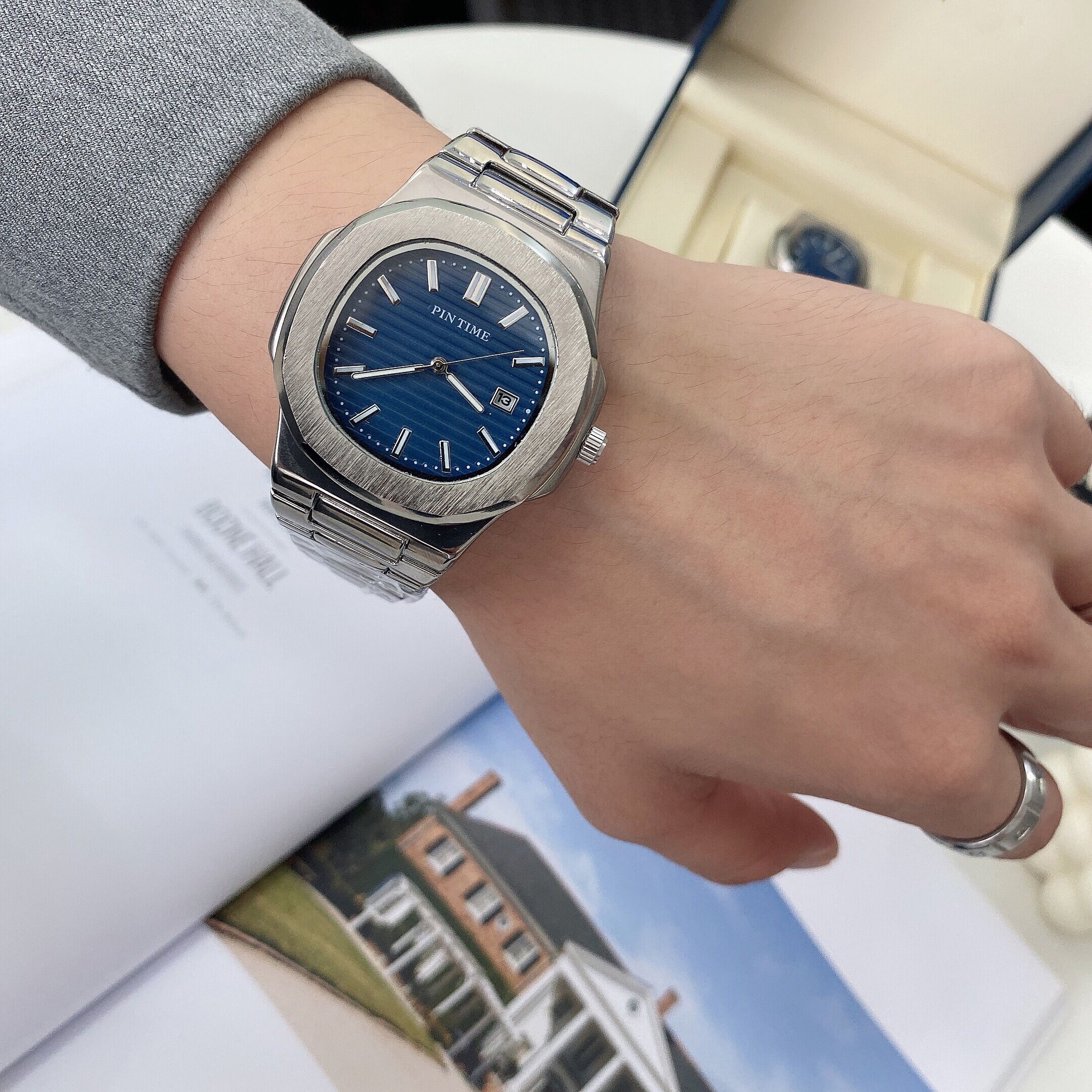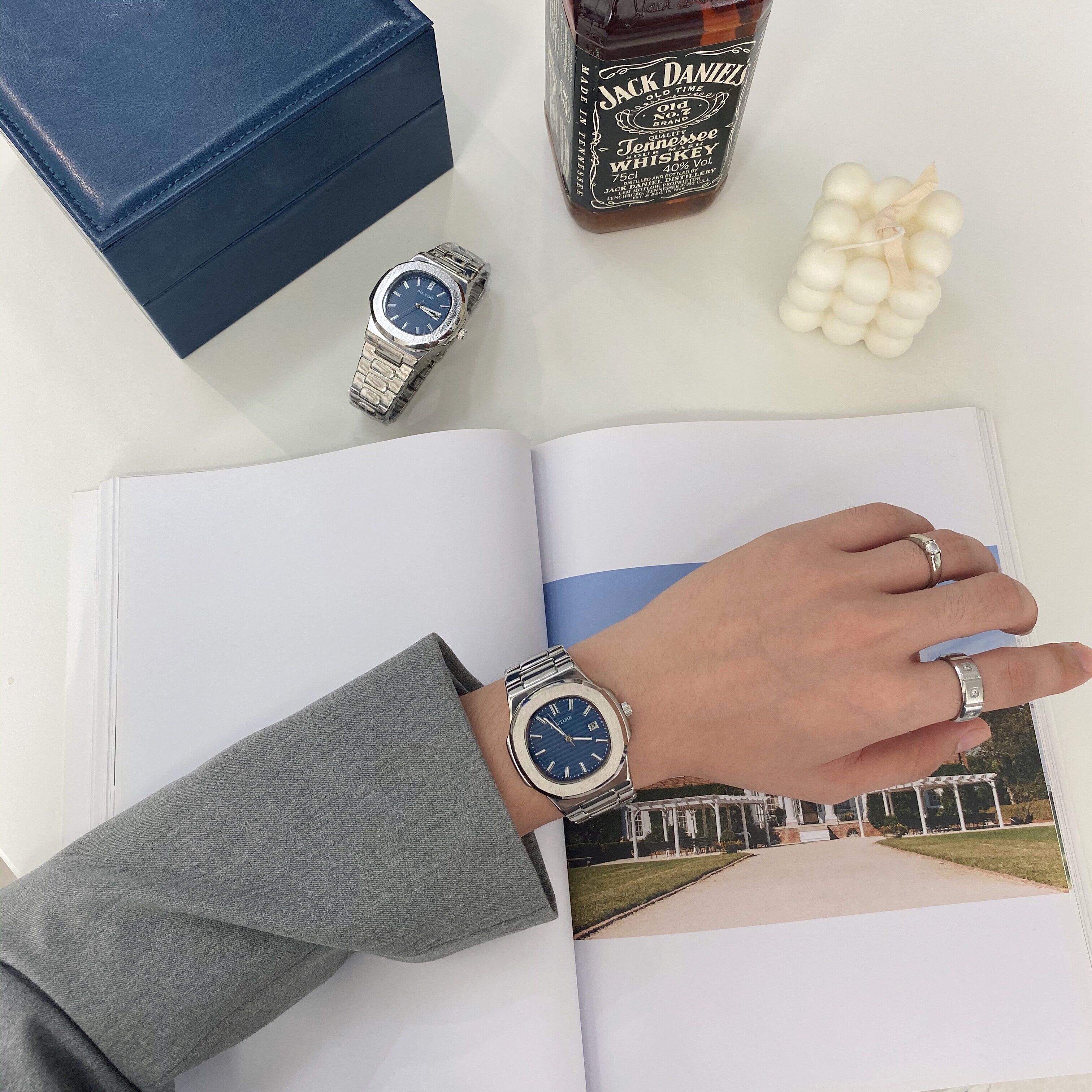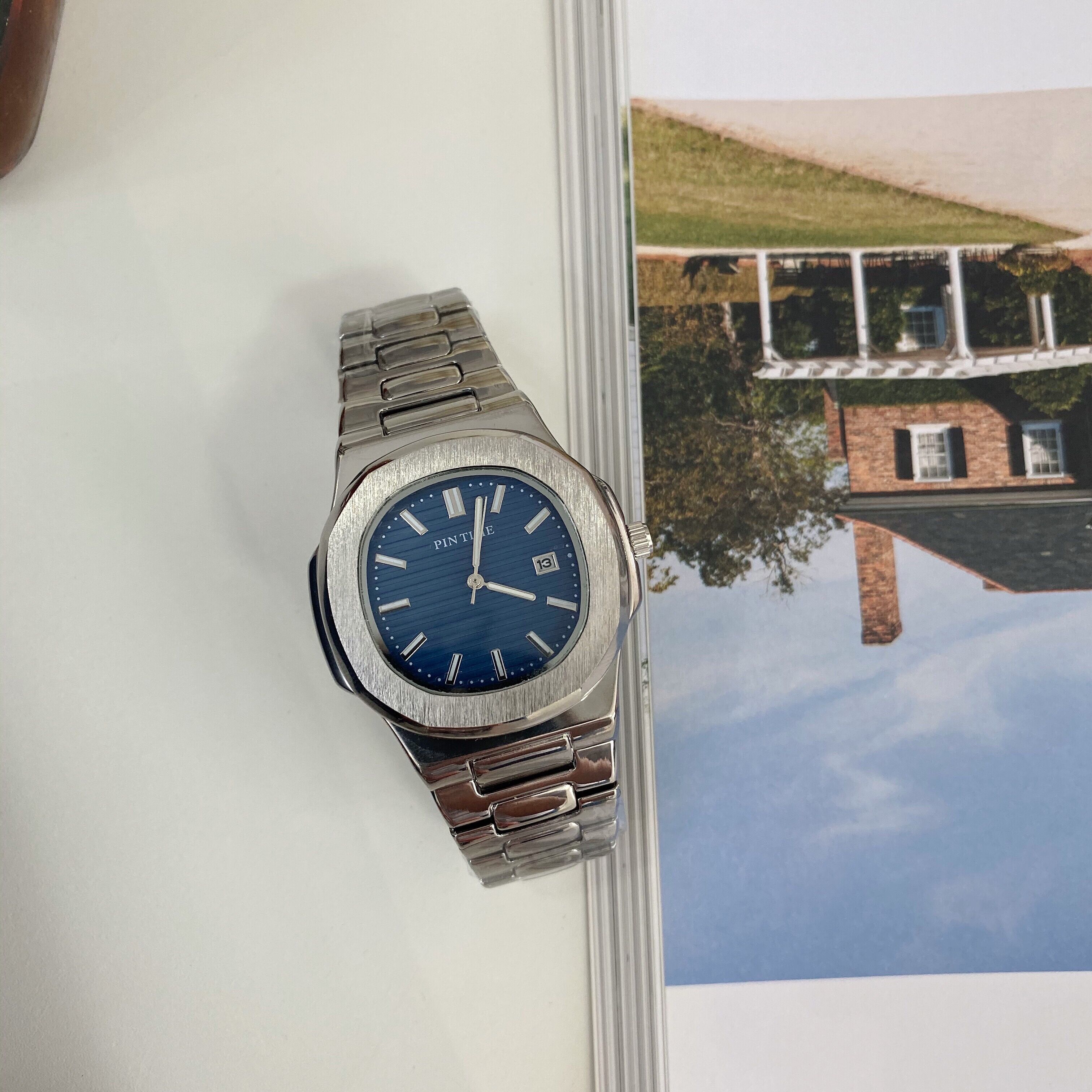 Мужские часы, стальной ремешок, модные трендовые квадратные часы, календарь, кварцевые часы, коллекция 2023, простой и элегантный дизайн