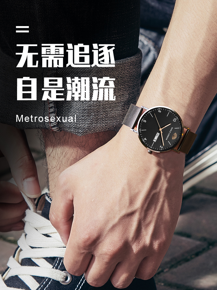 Мужские часы подходит для мужчин и женщин, механические трендовые водонепроницаемые электронные кварцевые часы, простой и элегантный дизайн
