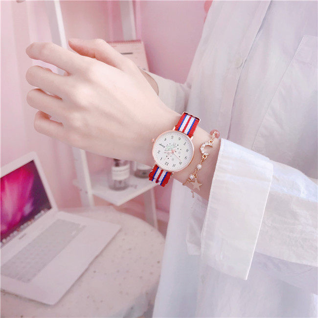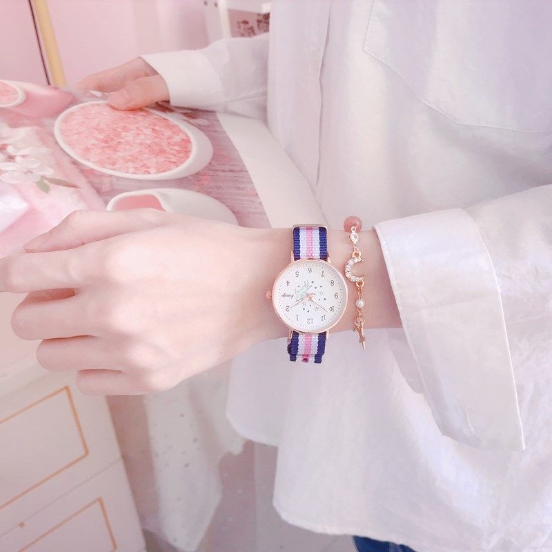 Unicorn Watch Женщина Ins Wind Junior High School Simple Simple Demprament Leisure Night Light Водонепроницаемый холст