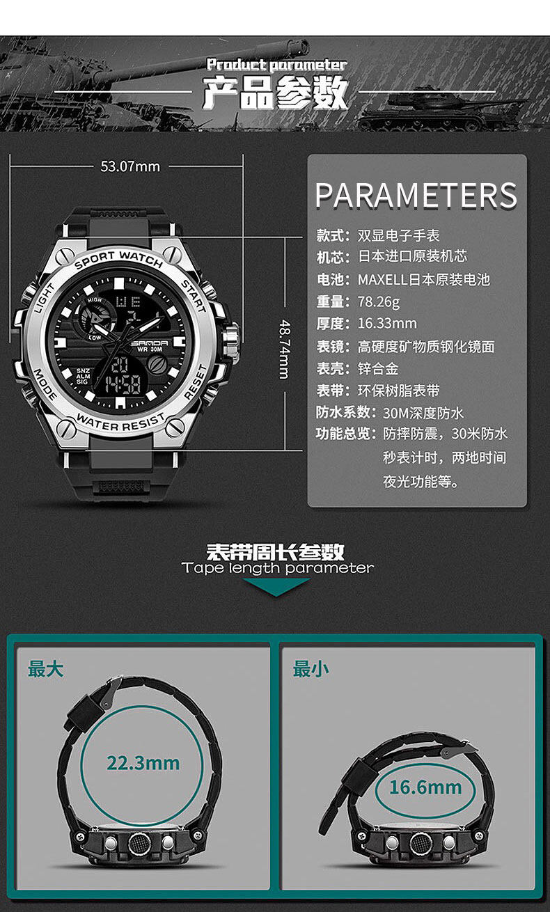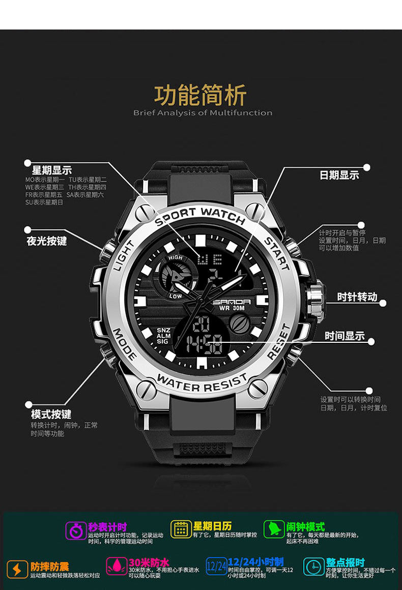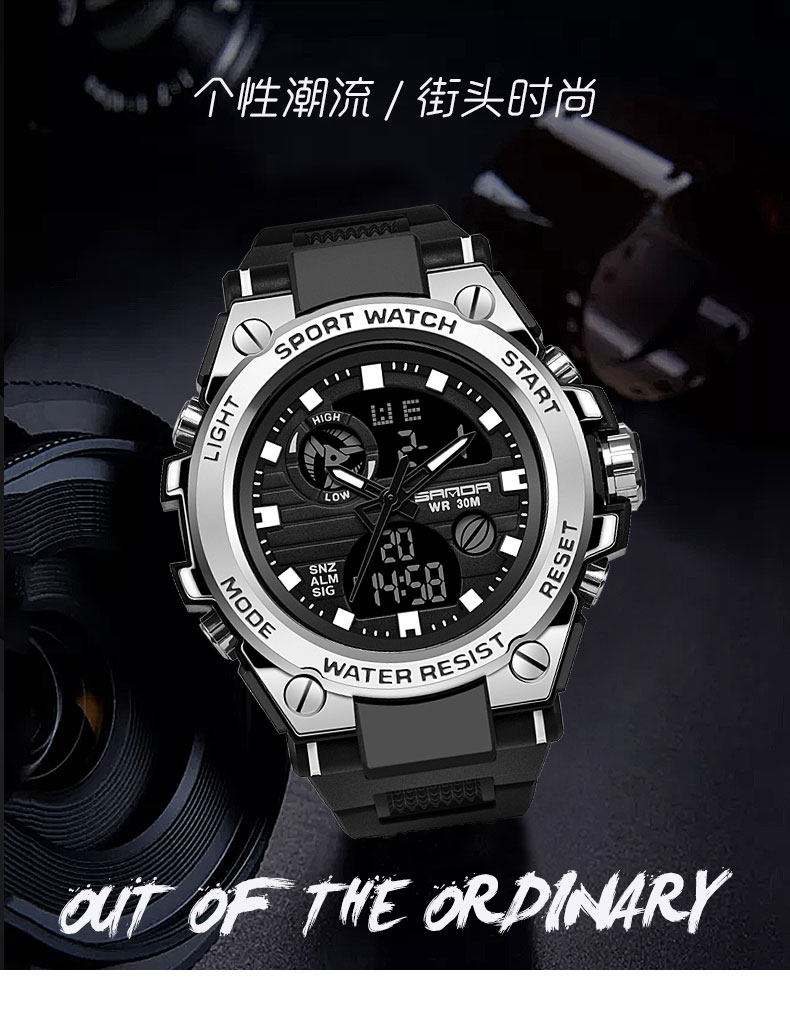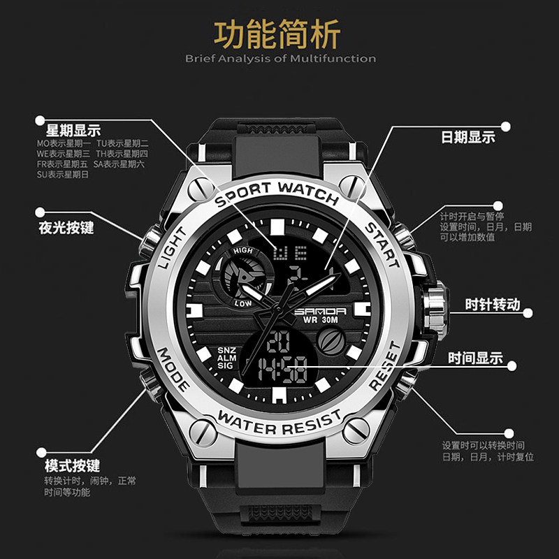 Электронные трендовые спортивные водонепроницаемые механические мужские часы, подходит для подростков