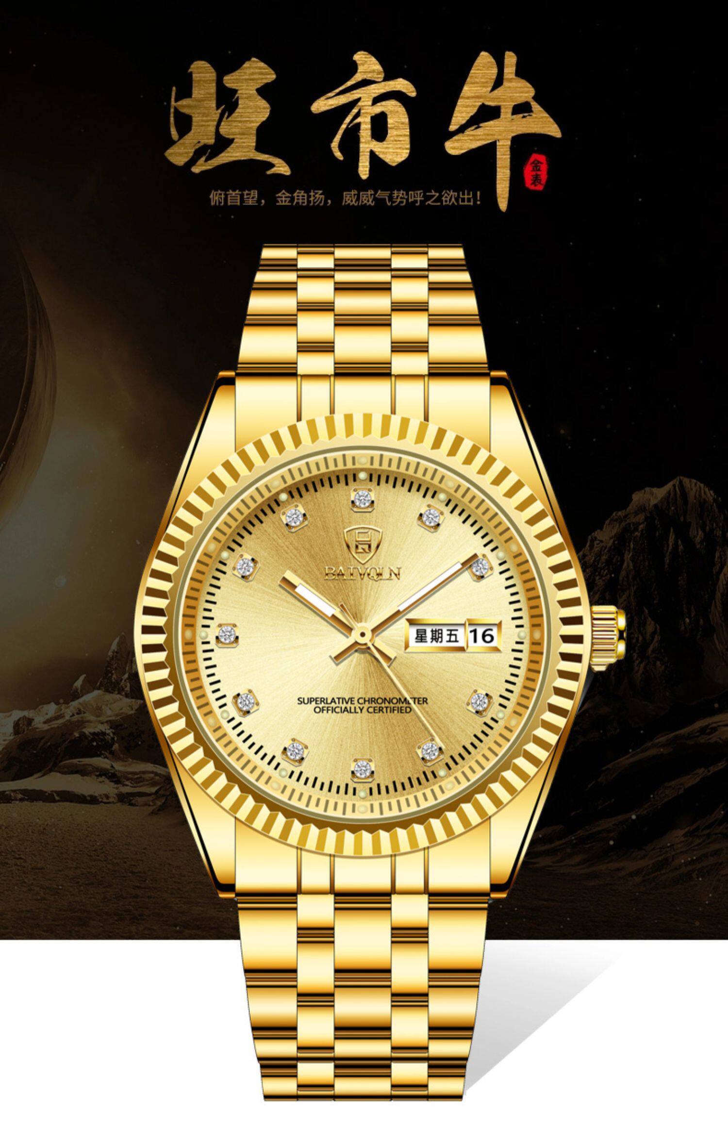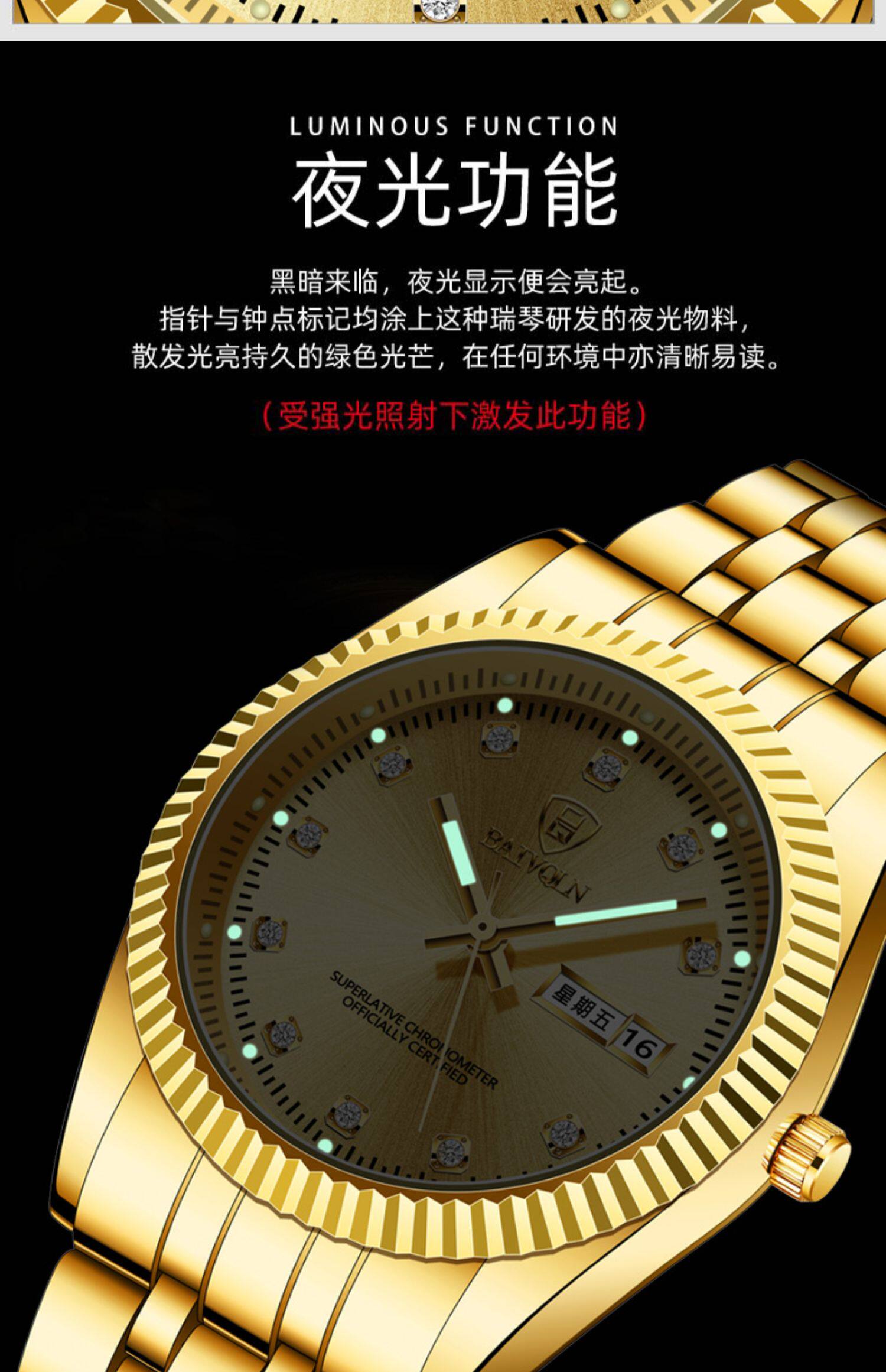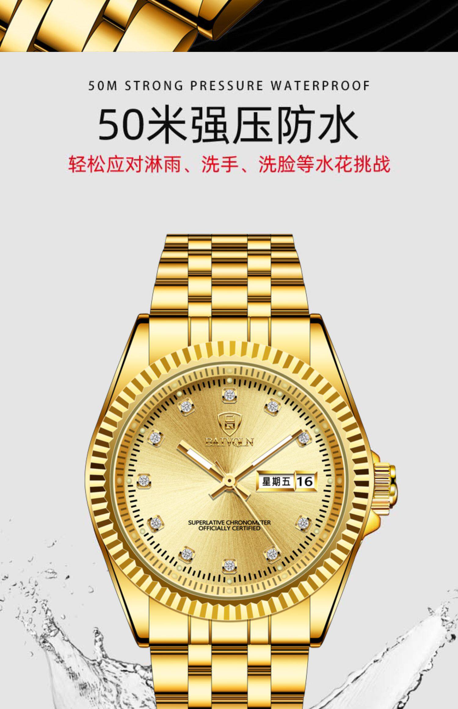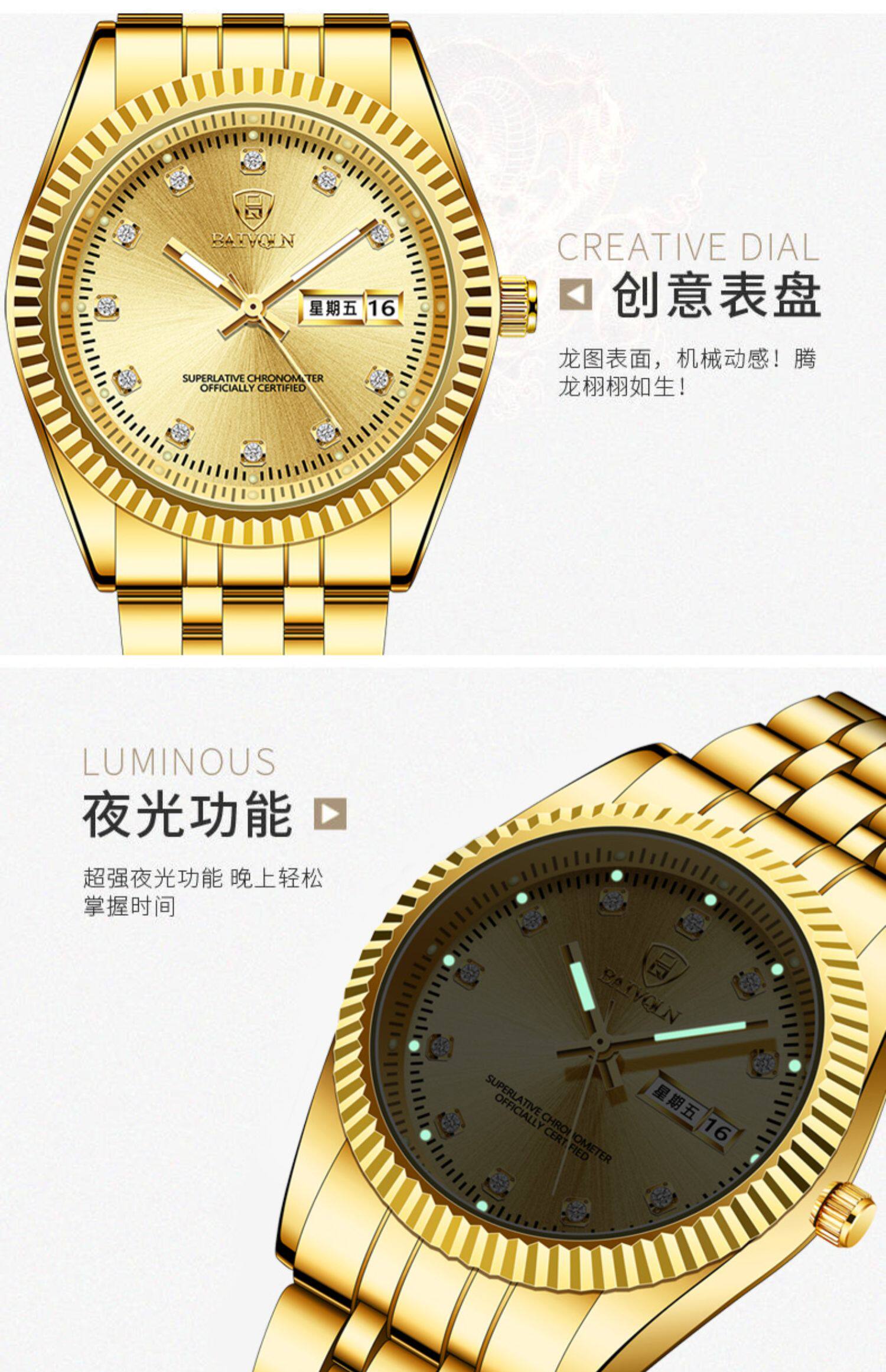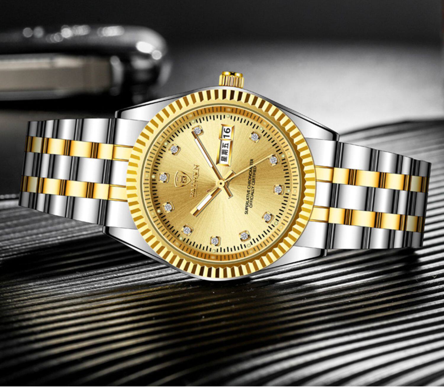 Золотые мужские часы, парные часы для влюбленных для пожилых людей, женские часы подходит для мужчин и женщин, водонепроницаемый механический календарь, Швейцария, для среднего возраста