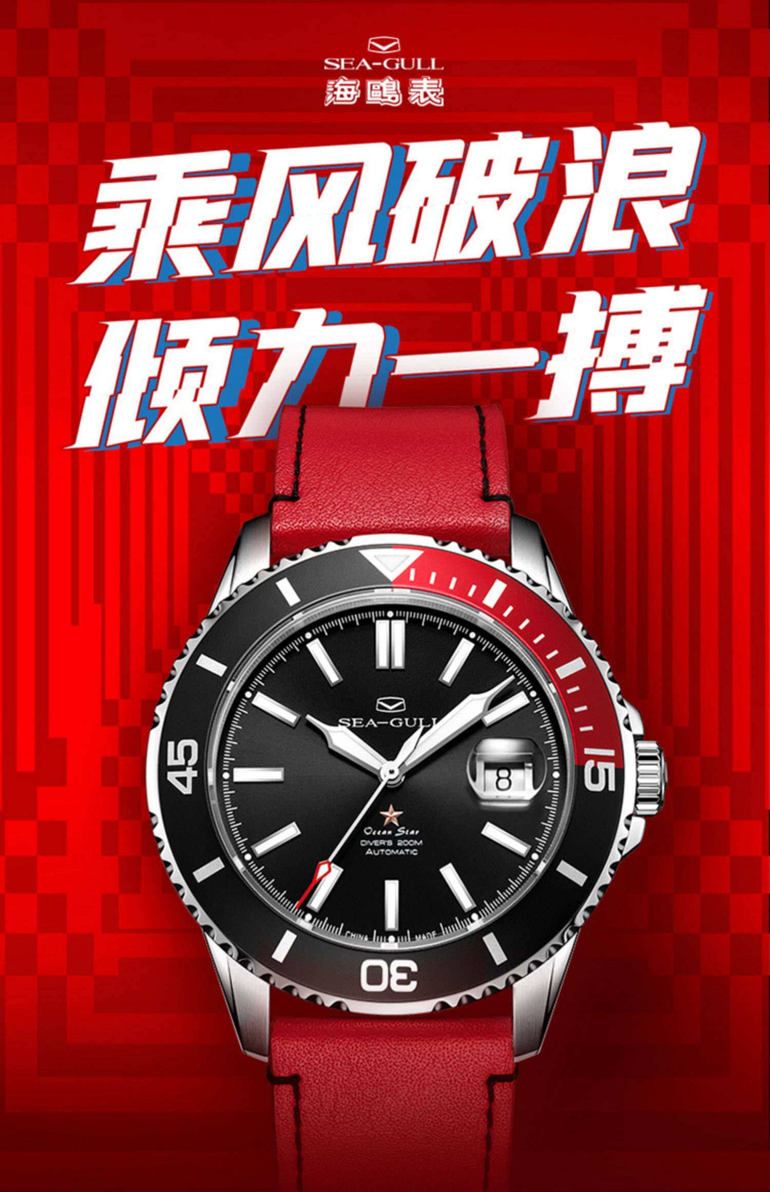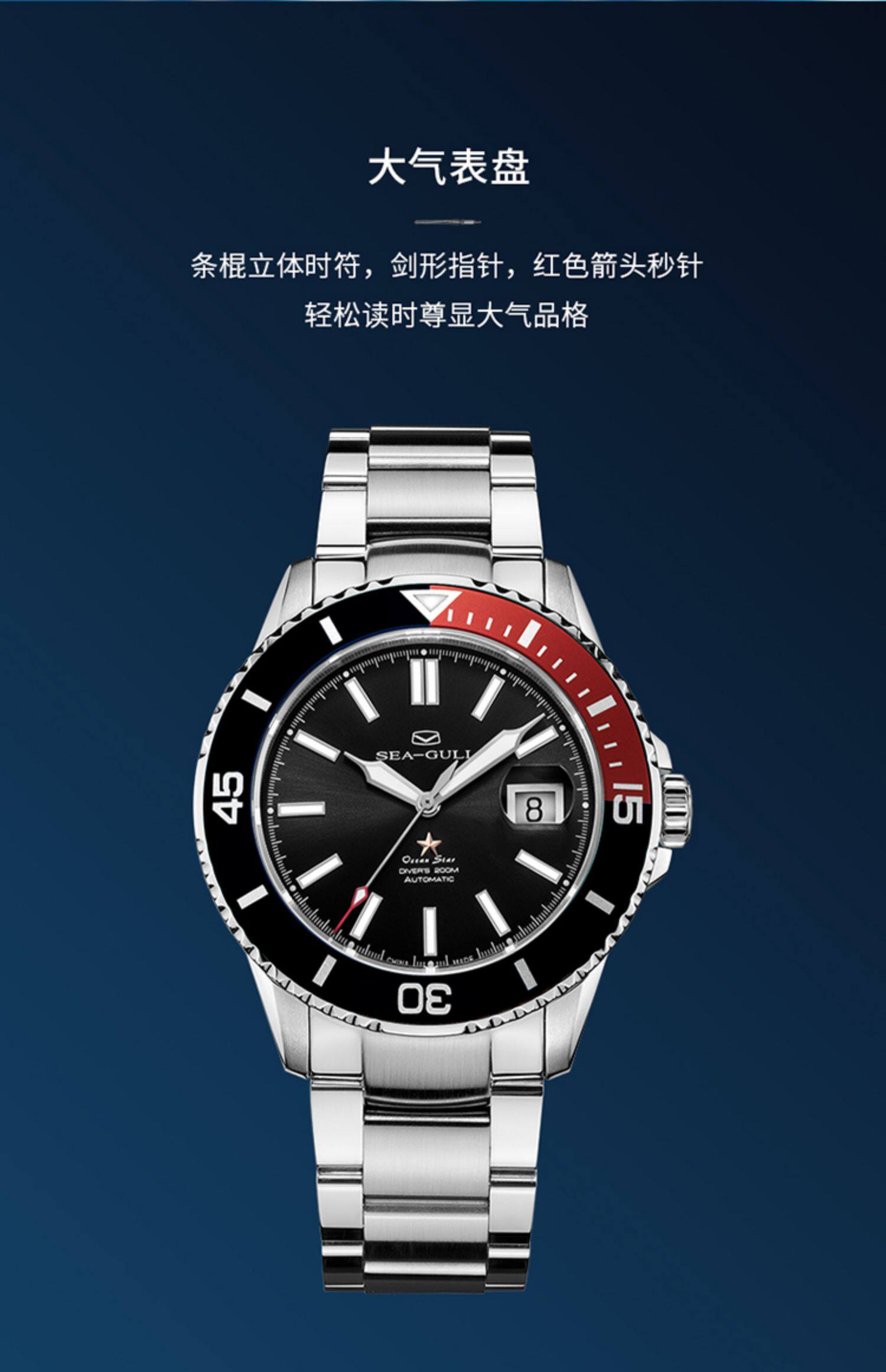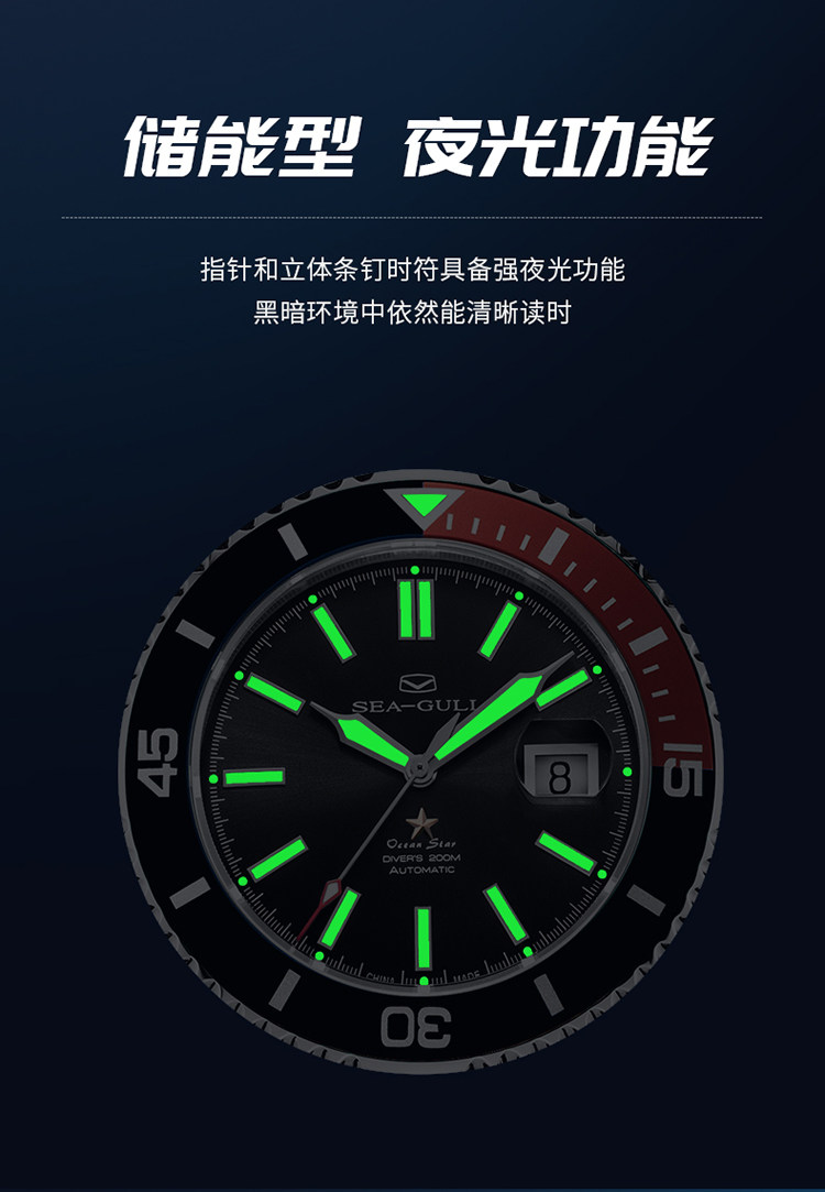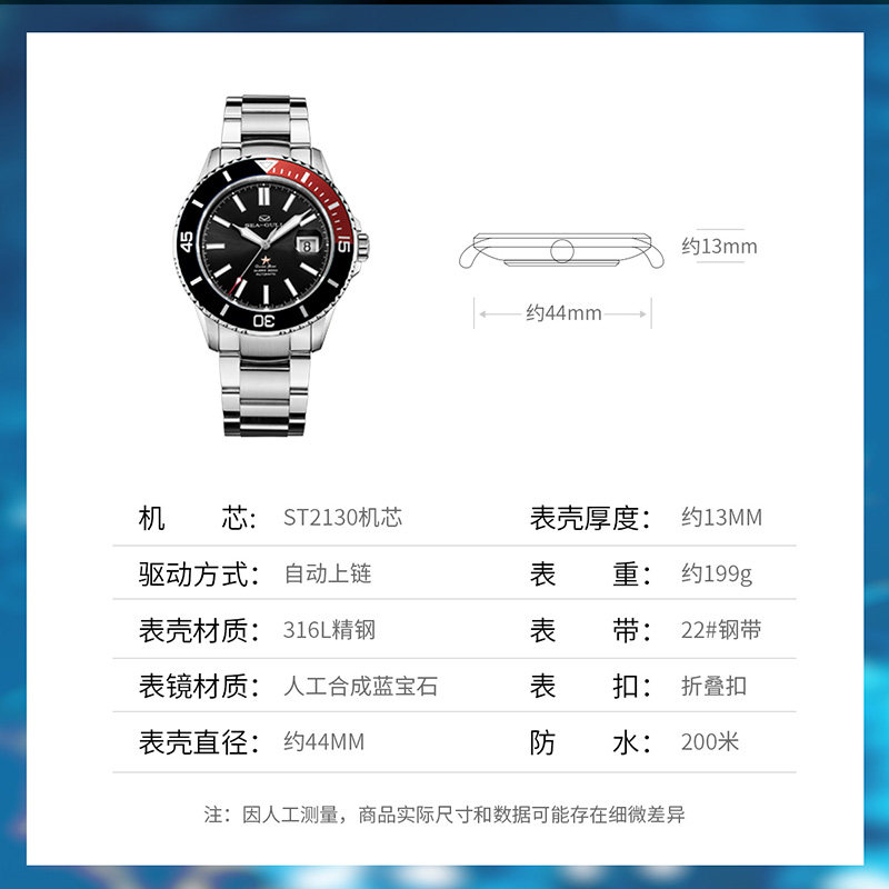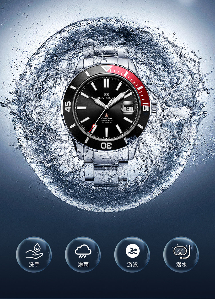 [Lang Ping той же модель] Seagull Watch Diving Business Steel Belt Automatic Mechanical Men's Watch 6114 Marine Star China Red