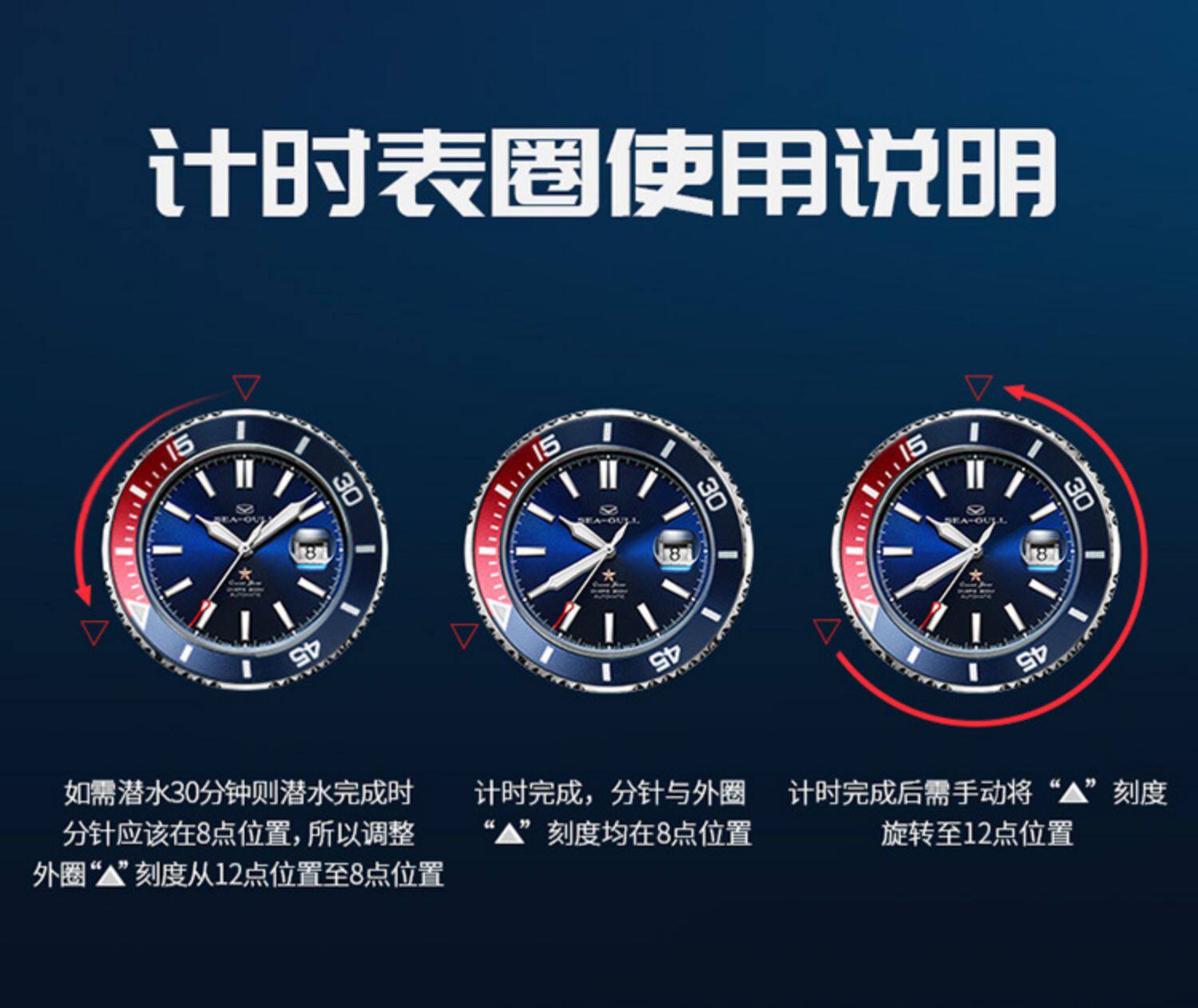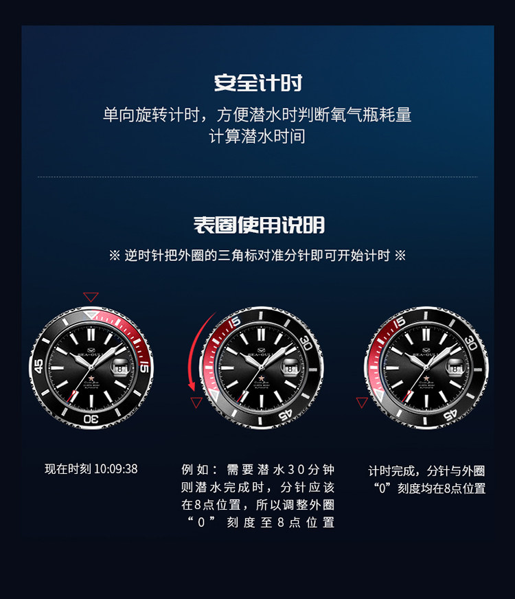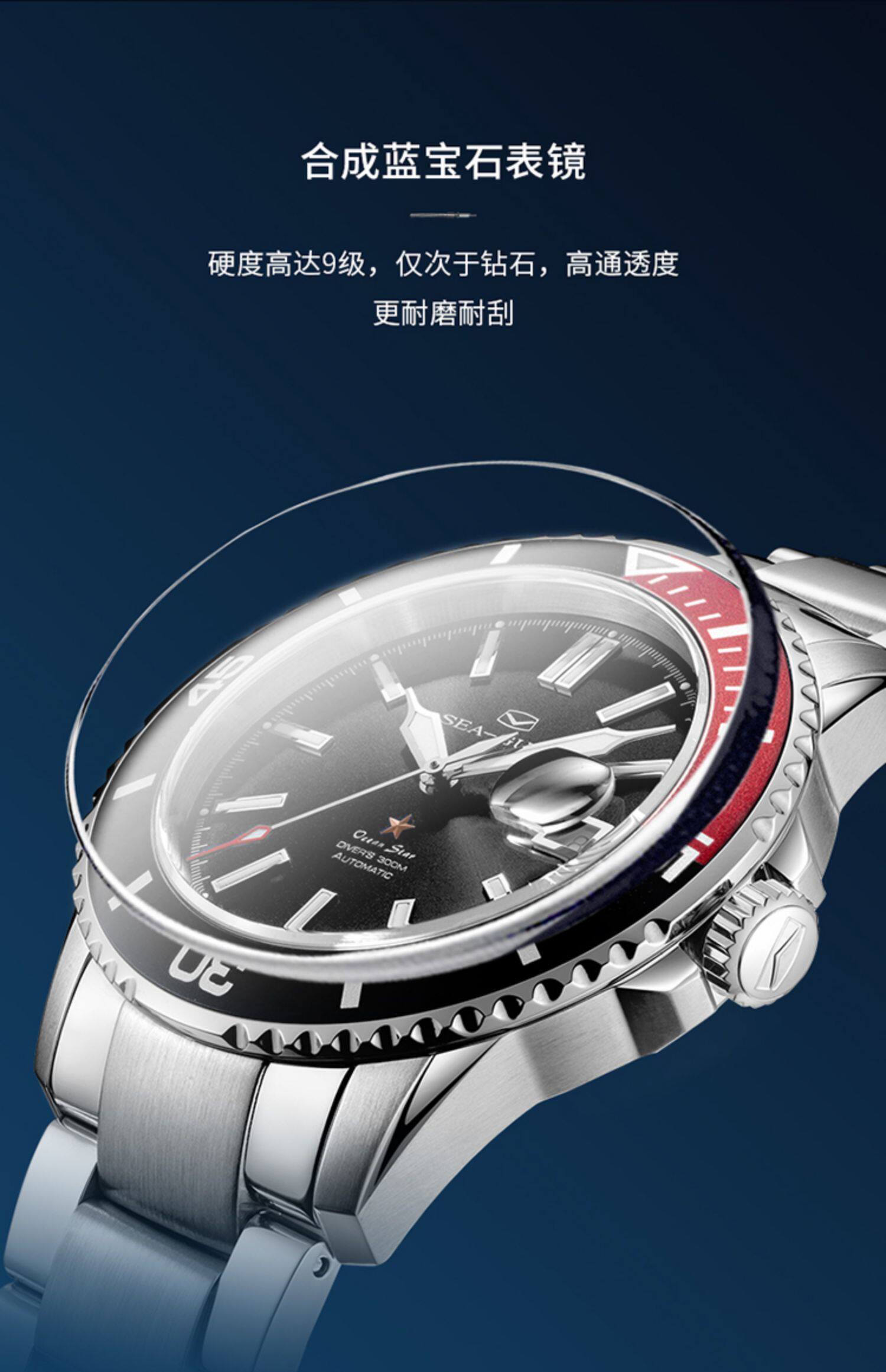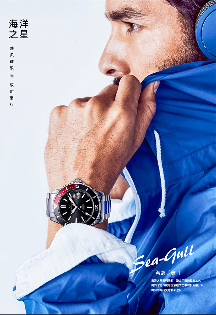 [Lang Ping той же модель] Seagull Watch Diving Business Steel Belt Automatic Mechanical Men's Watch 6114 Marine Star China Red