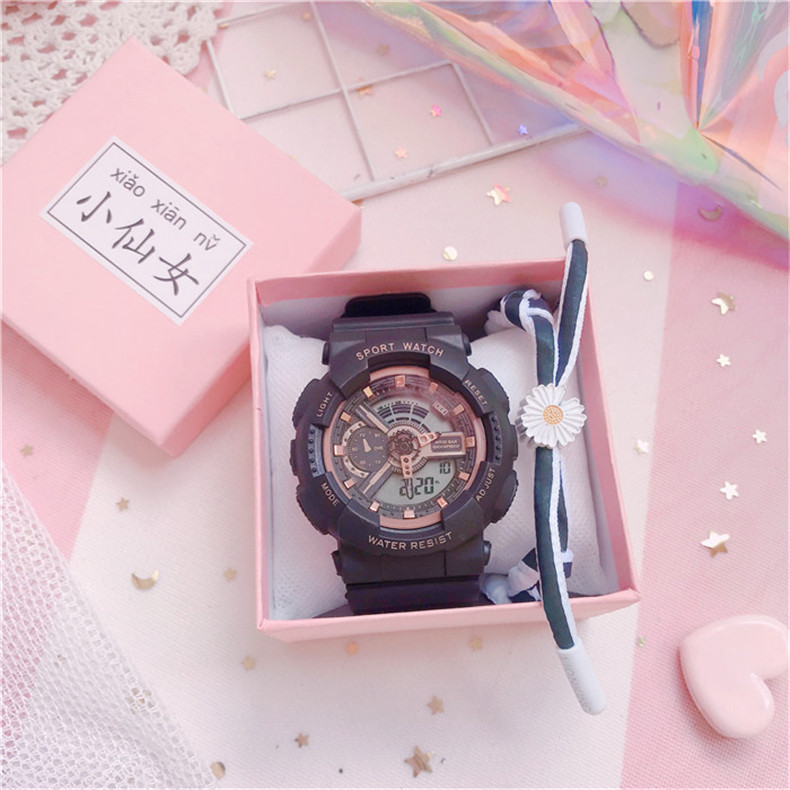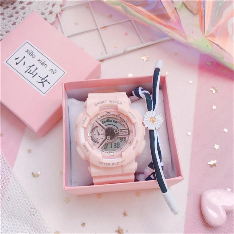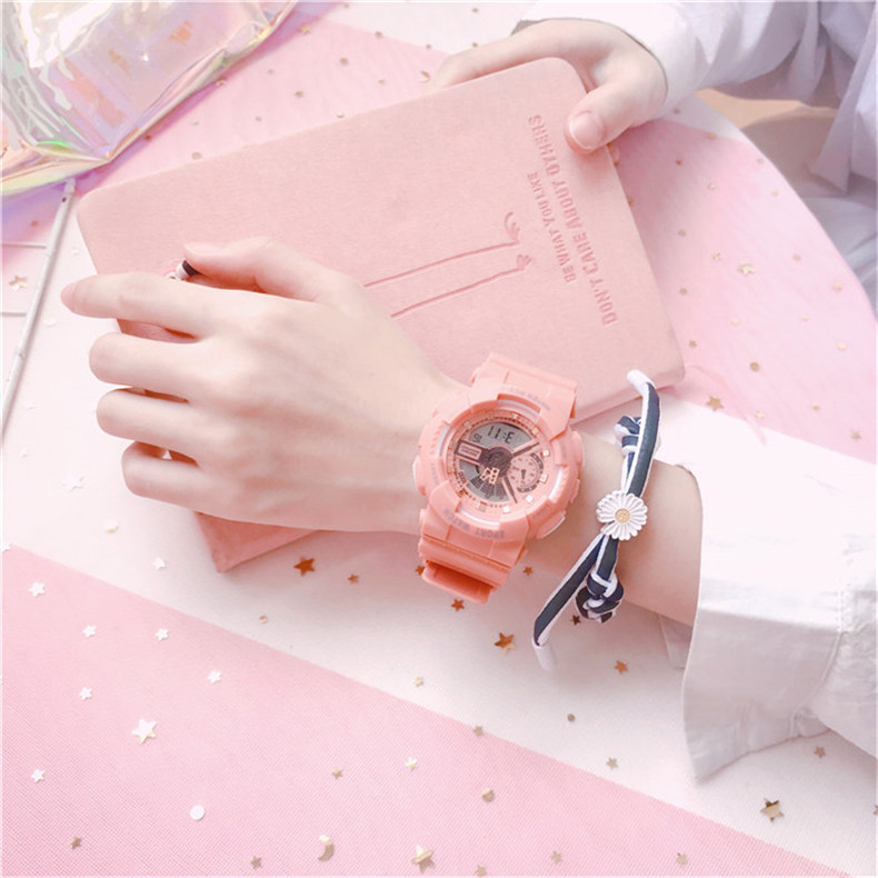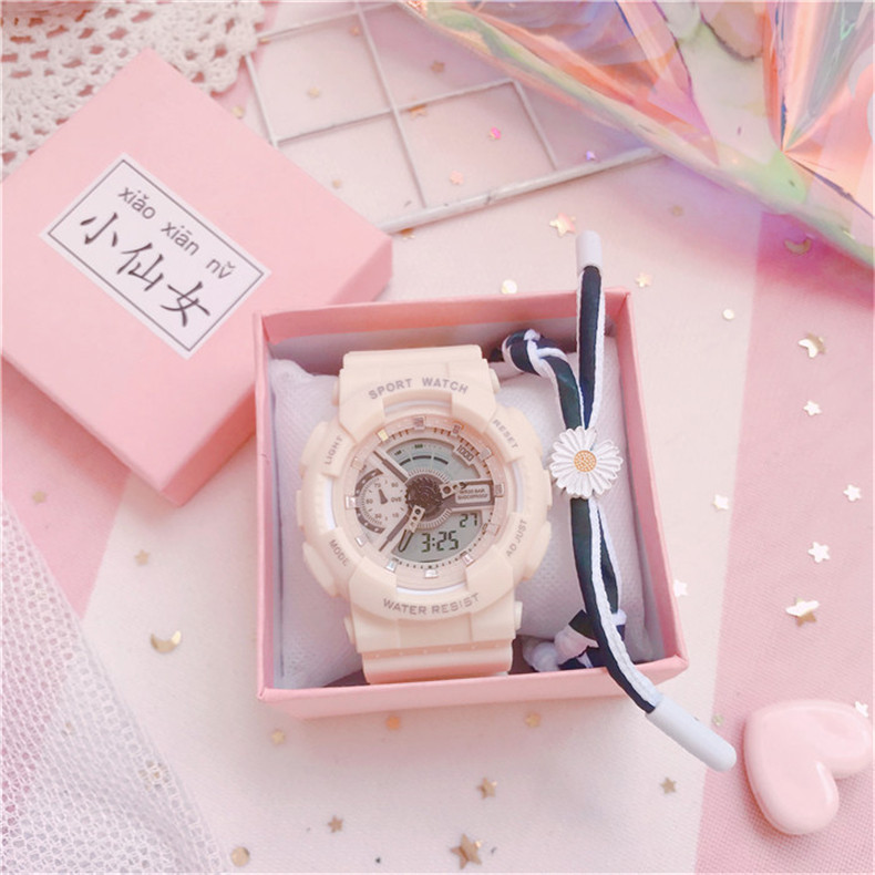 Водонепроницаемые модные трендовые свежие цифровые часы для отдыха, простой и элегантный дизайн, в корейском стиле