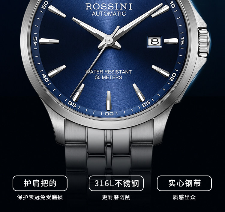 Live Rosini Подлинные мужские часы Просвещение водонепроницаемые автоматические механические часы Простые деловые мужчины 5200005