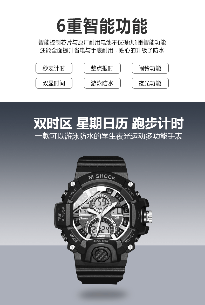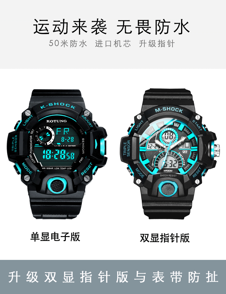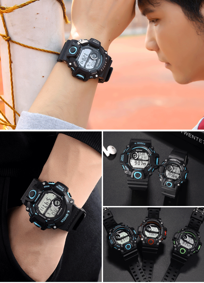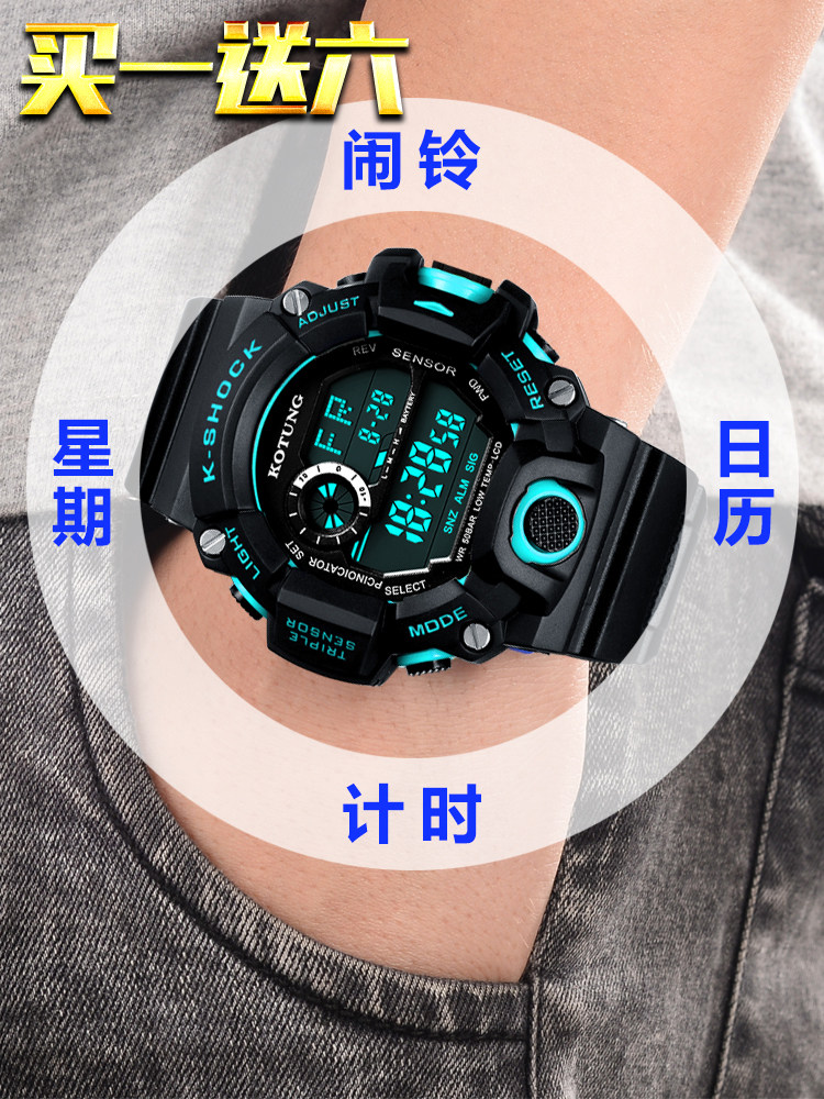 Универсальные детские водонепроницаемые электронные трендовые неоновые мужские часы
