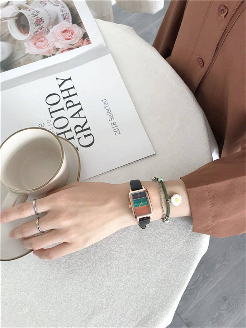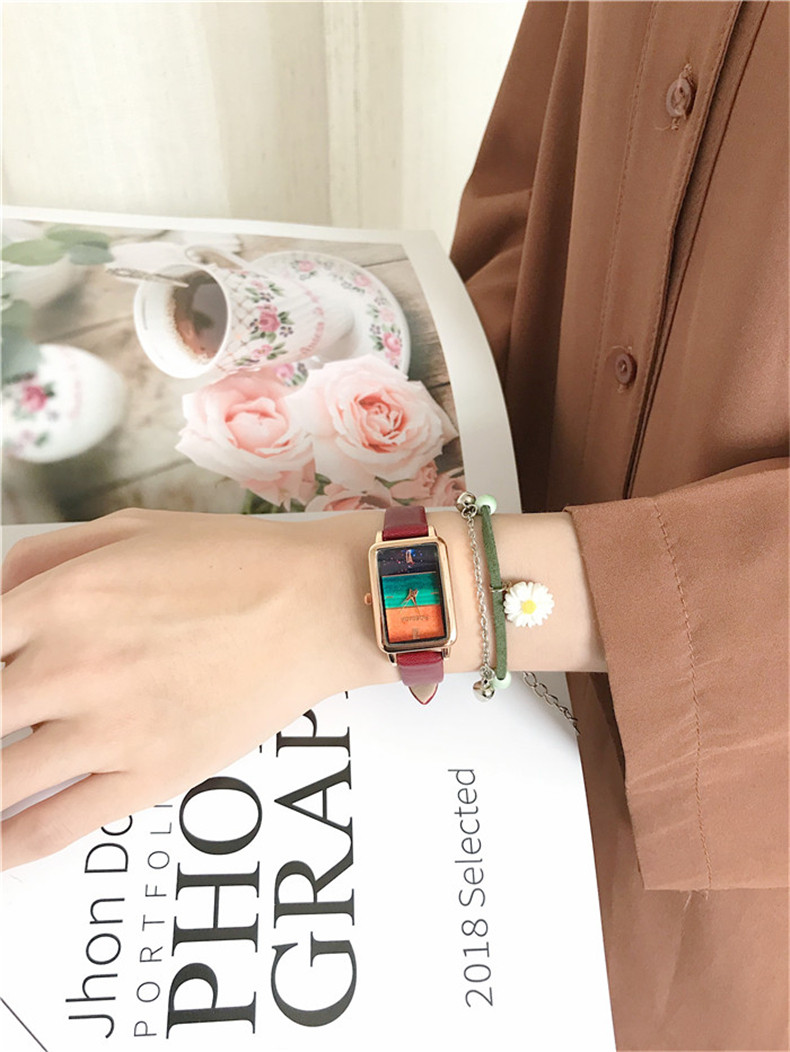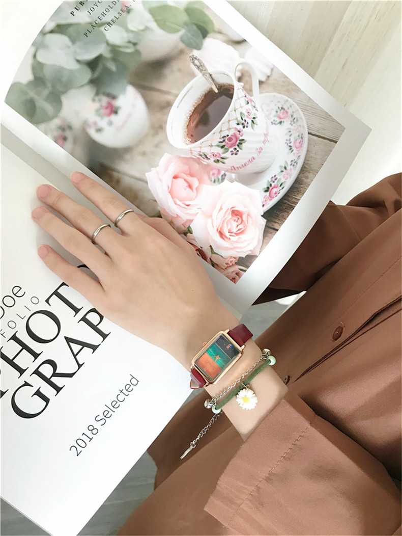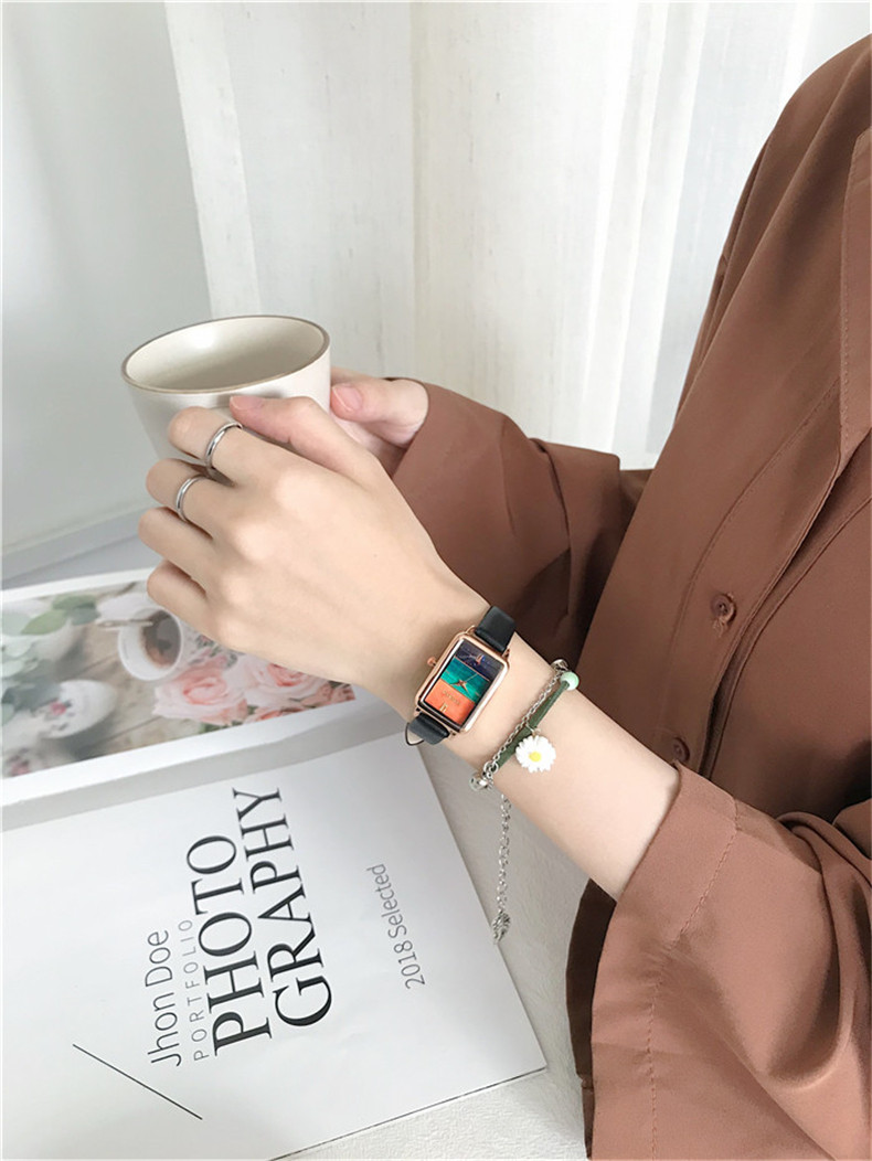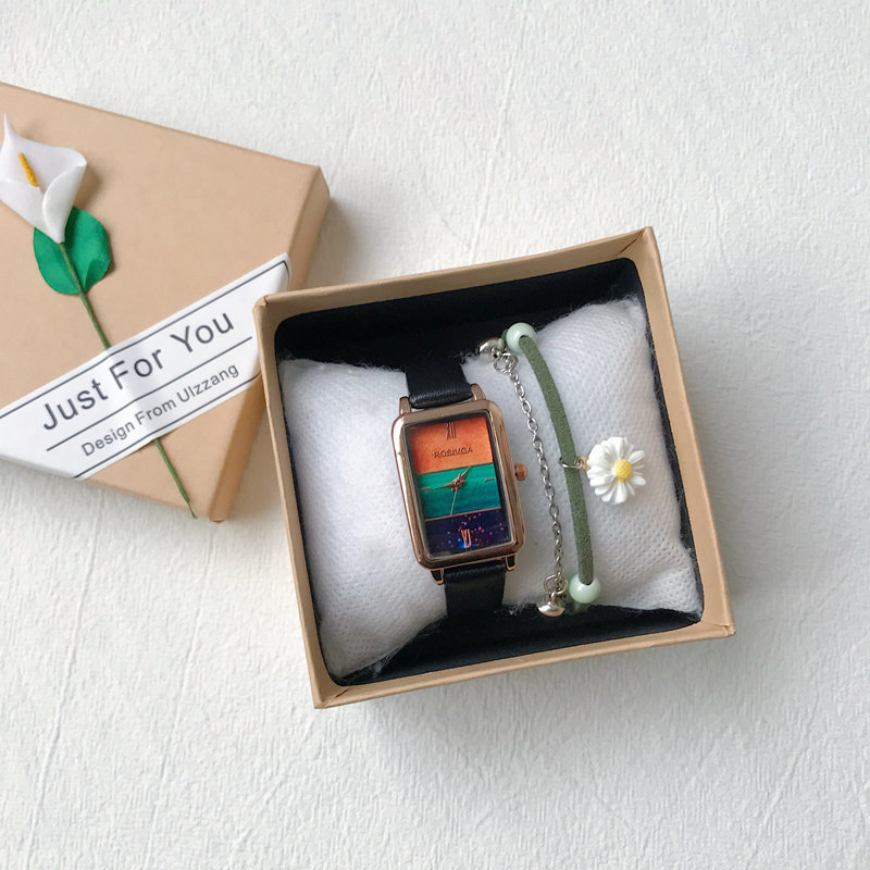 Часы, квадратный маленький брендовый свежий ретро модный циферблат, простой и элегантный дизайн