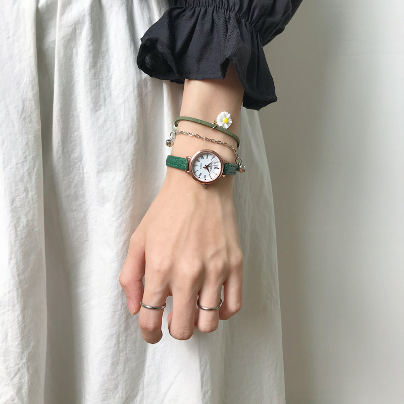 Ретро зеленые свежие брендовые часы, циферблат, в корейском стиле, простой и элегантный дизайн, маленький циферблат