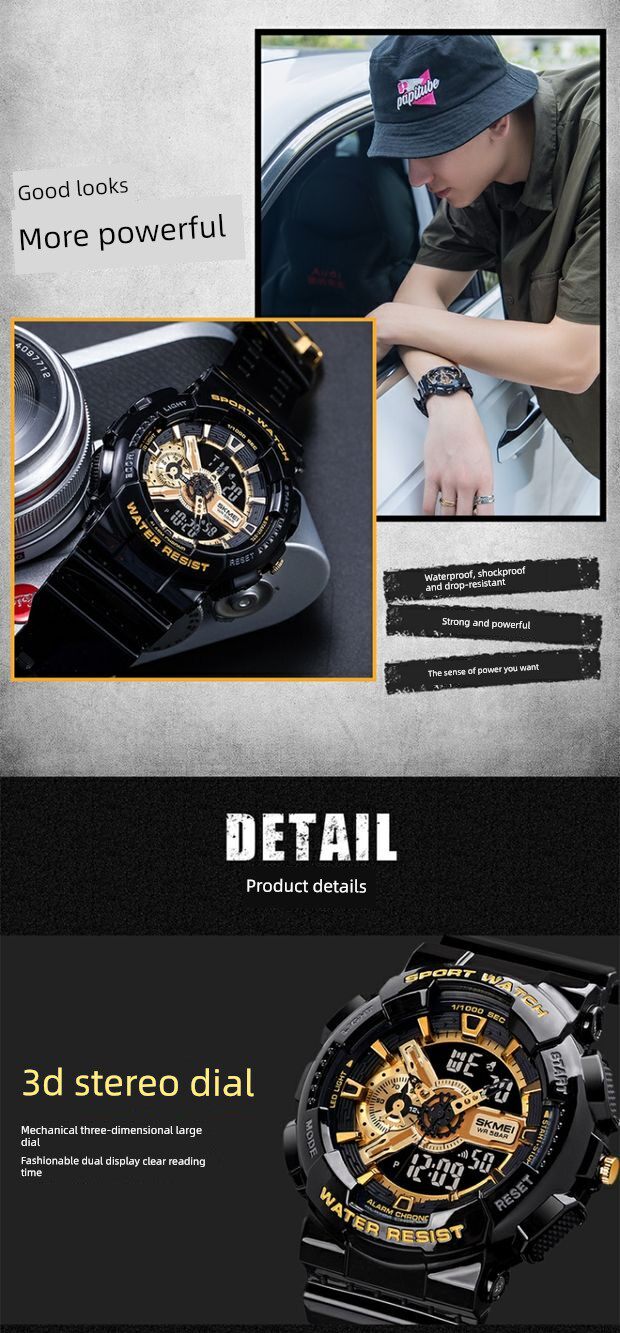 Дорожные водонепроницаемые противоударные спортивные электронные мужские часы