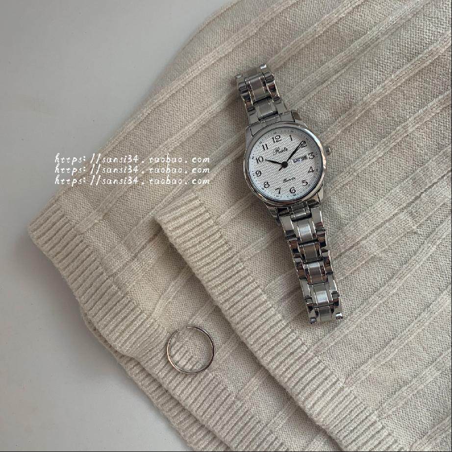 Календарь, универсальные ретро кварцевые часы, универсальный стальной ремешок, простой и элегантный дизайн