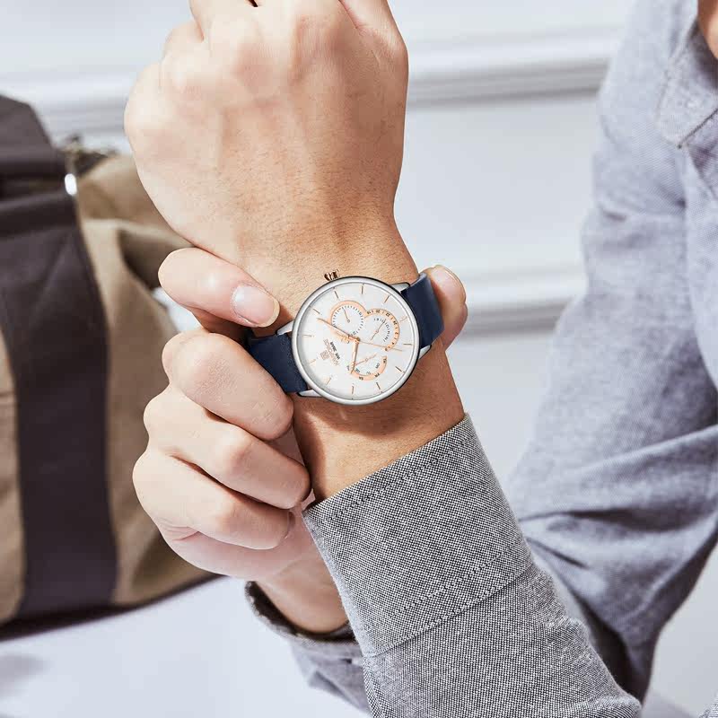 Тонкие швейцарские часы, ремень, водонепроницаемый календарь, кварцевые часы, из натуральной кожи