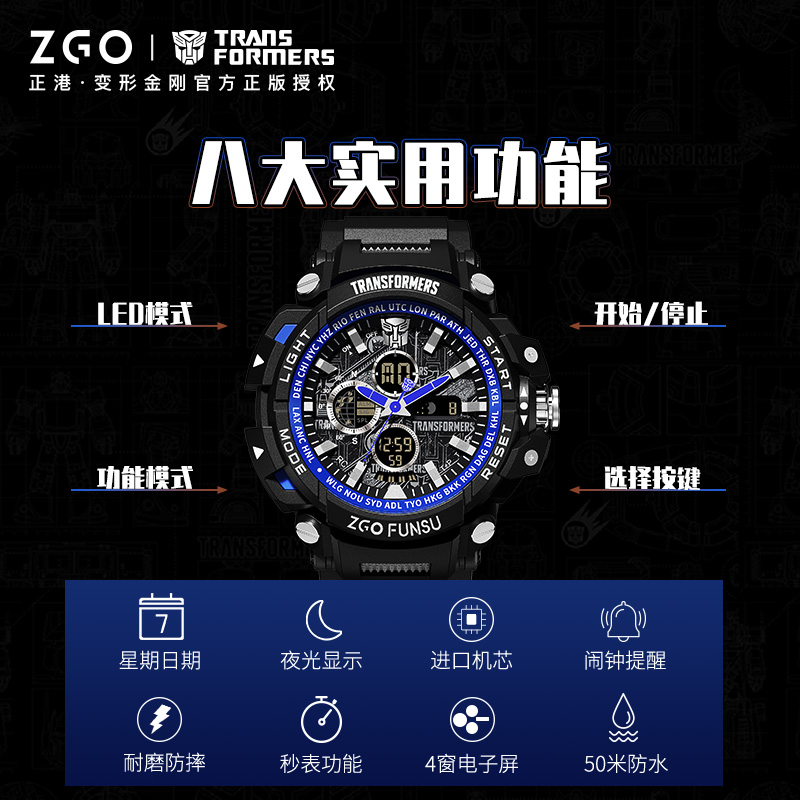 正港 Трансформер для школьников для мальчиков, трендовые водонепроницаемые электрические электронные мужские часы, Кинг-Конг, для средней школы
