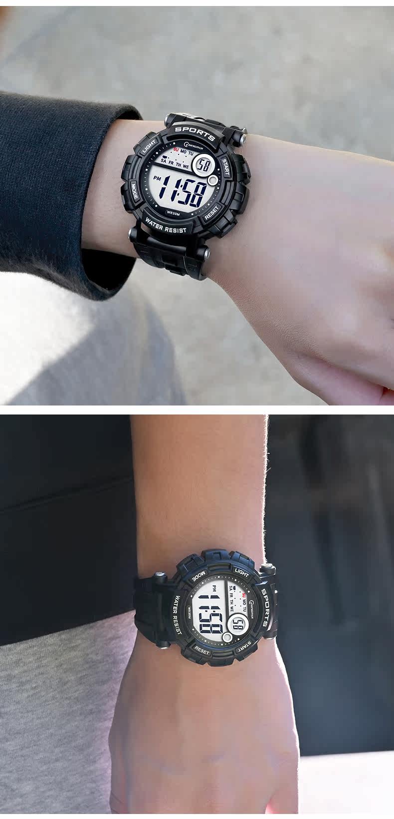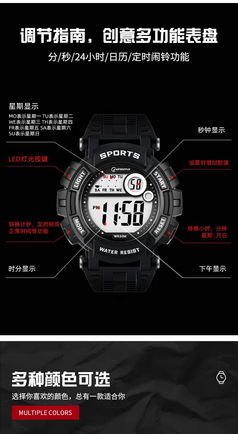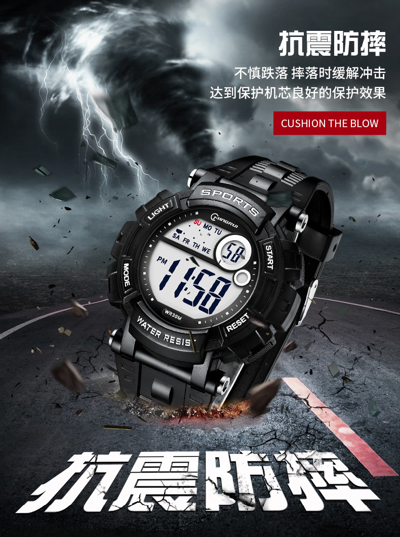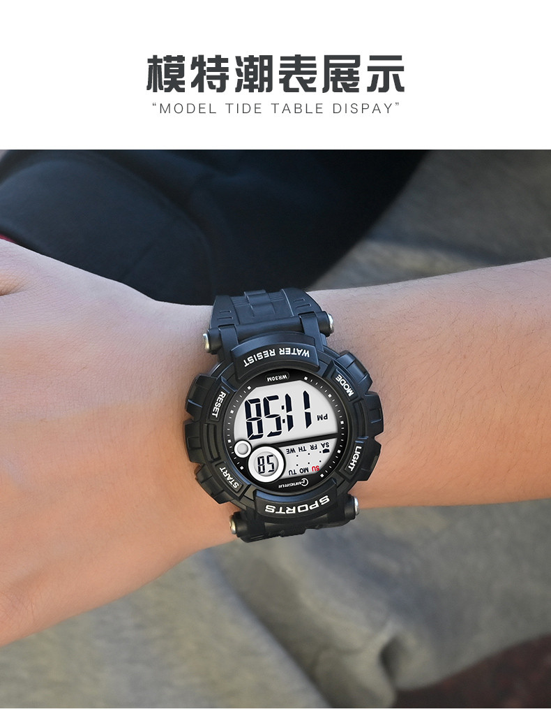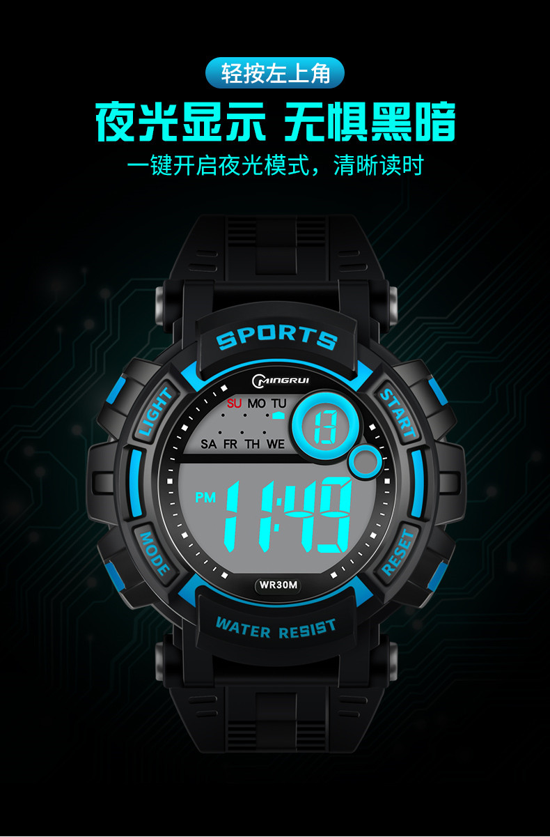 Мужские часы, универсальные водонепроницаемые трендовые цифровые часы, неоновый циферблат